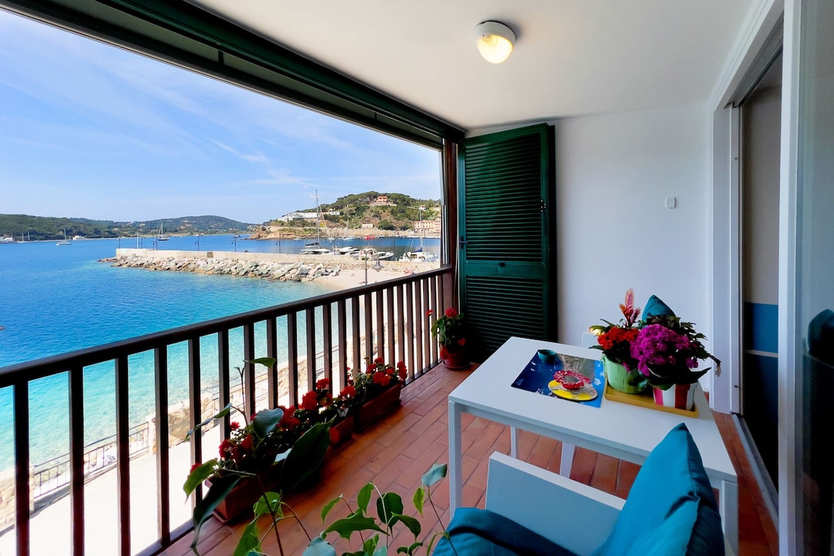 Il nostro appartamento si trova sul lungomare di Porto Azzurro: l'ampia finestra del soggiorno è un quadro che cambia di continuo a seconda delle ore del giorno, del vento, della stagione. Dall'inverno all'estate non ci si stanca mai di stare seduti sul balcone ad ammirare il mare: le barche che entrano in porto o che partono per il loro viaggio, le persone, i turisti, i pescatori.. dopo qualche giorno anche voi avrete imparato a riconoscerli e vi faranno compagnia nella vostra vacanza