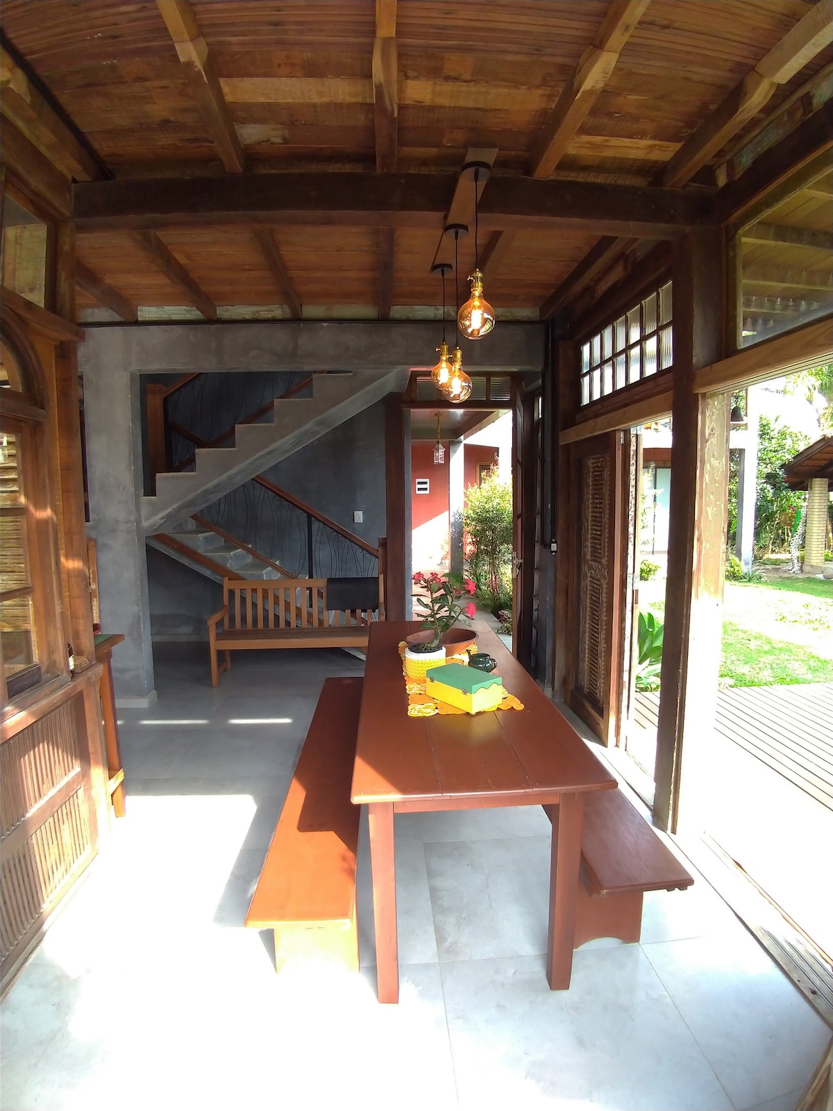Relaxe neste espaço calmo, rodeado pela natureza e cheio de estilo! Por aqui tem muita natureza e diversas praias ao redor. Temos espaços externos para compartilhar bons momentos com novos amigos, fogueira em noites de lua cheia, tranquilidade nas nossas redes e um quintal com vista pra belos locais verdes. Costumamos dizer que recebemos hóspedes e nos despedimos de amigos. *Eventualmente compartilhamos o café da manhã com os hóspedes*