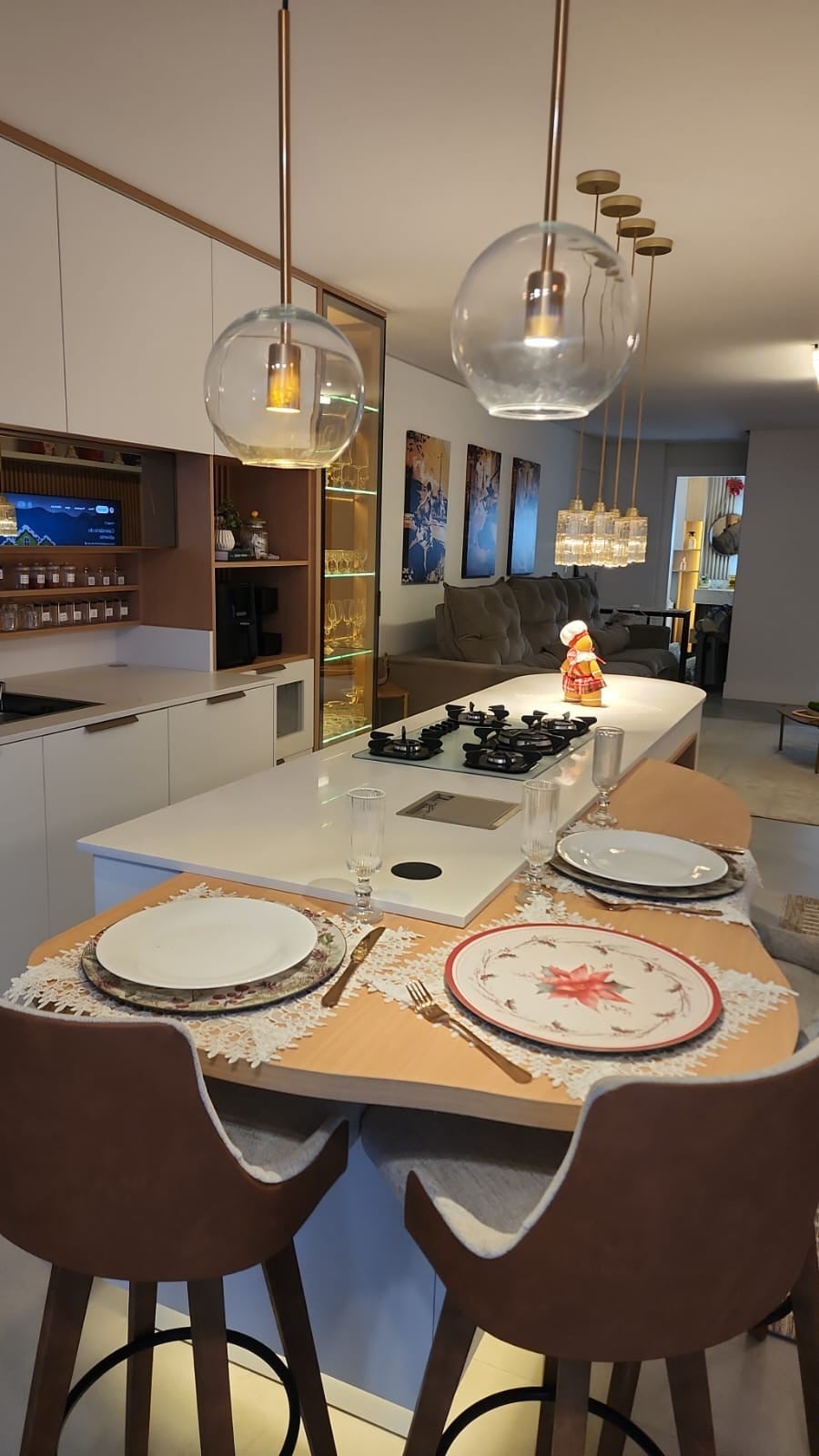 Viva dias especiais neste apto amplo, moderno e muito bem localizado. O imóvel dispõe de 3 suítes, 1 lavabo, cozinha completa, sala de estar e sala de jantar, oferecendo espaço e praticidade para famílias/grupos. Todos os ambientes são climatizados. A sacada é equipada com churrasqueira, mesa para refeições e uma vista aberta para o mar. Oferecemos roupa de cama e de banho (opcional). Dispomos de algumas cadeiras de praia e guarda sol. Lavanderia completa. Duas vagas de garagem.