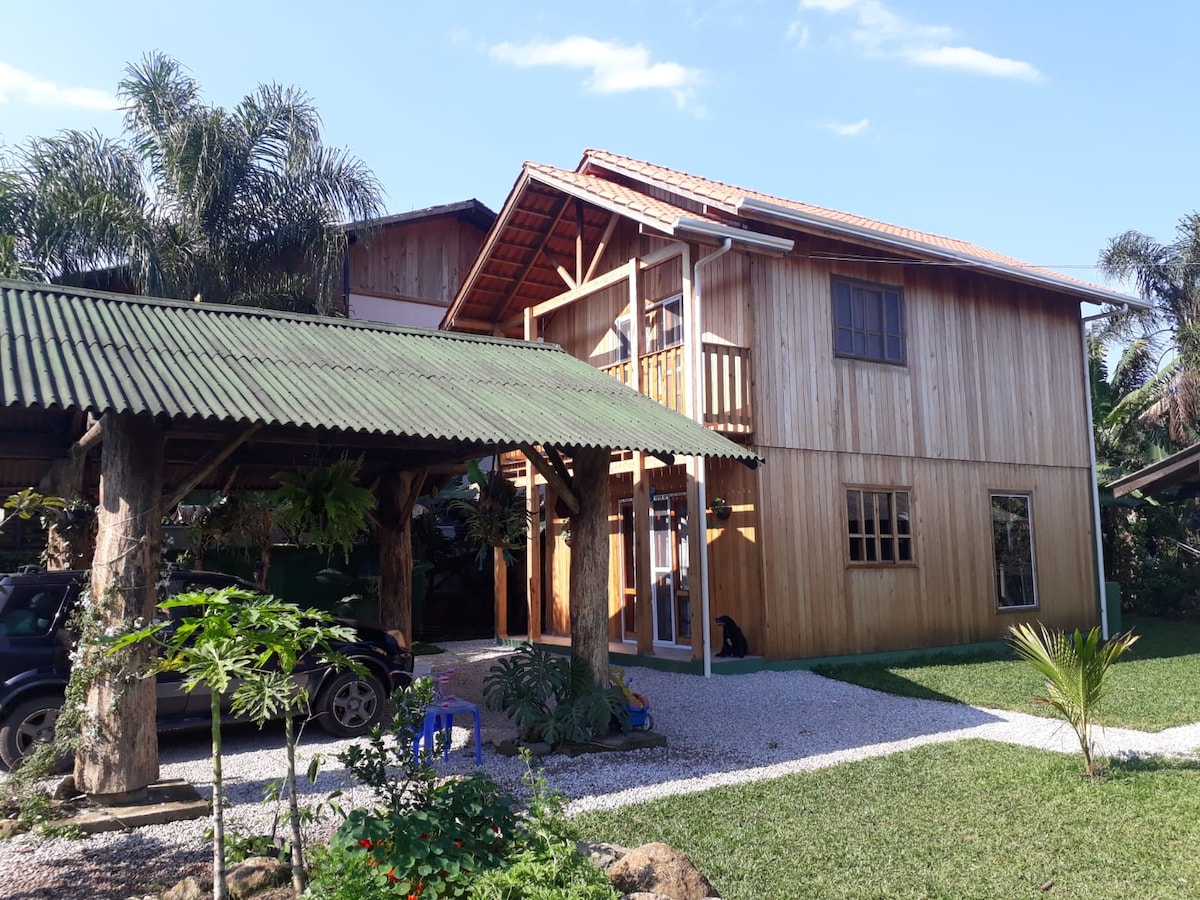 Nosso espaço proporciona a você e sua família uma estadia maravilhosa! Nossa natureza lhe oferece uma terapia incrível, descansa sua mente, renova suas energias! Propriedade cercada por rios e riachos, lugar de muita paz! Além de uma casa ou chalés super confortáveis, limpos e organizados. Pra completar, uma piscina natural, rancho com churrasqueira, mesas de jogos , redes. Temos opção de jacuzzi hidromassagem (*valor extra) Tem também a comodidade de ficar à 15 minutos da praia de Itapema!