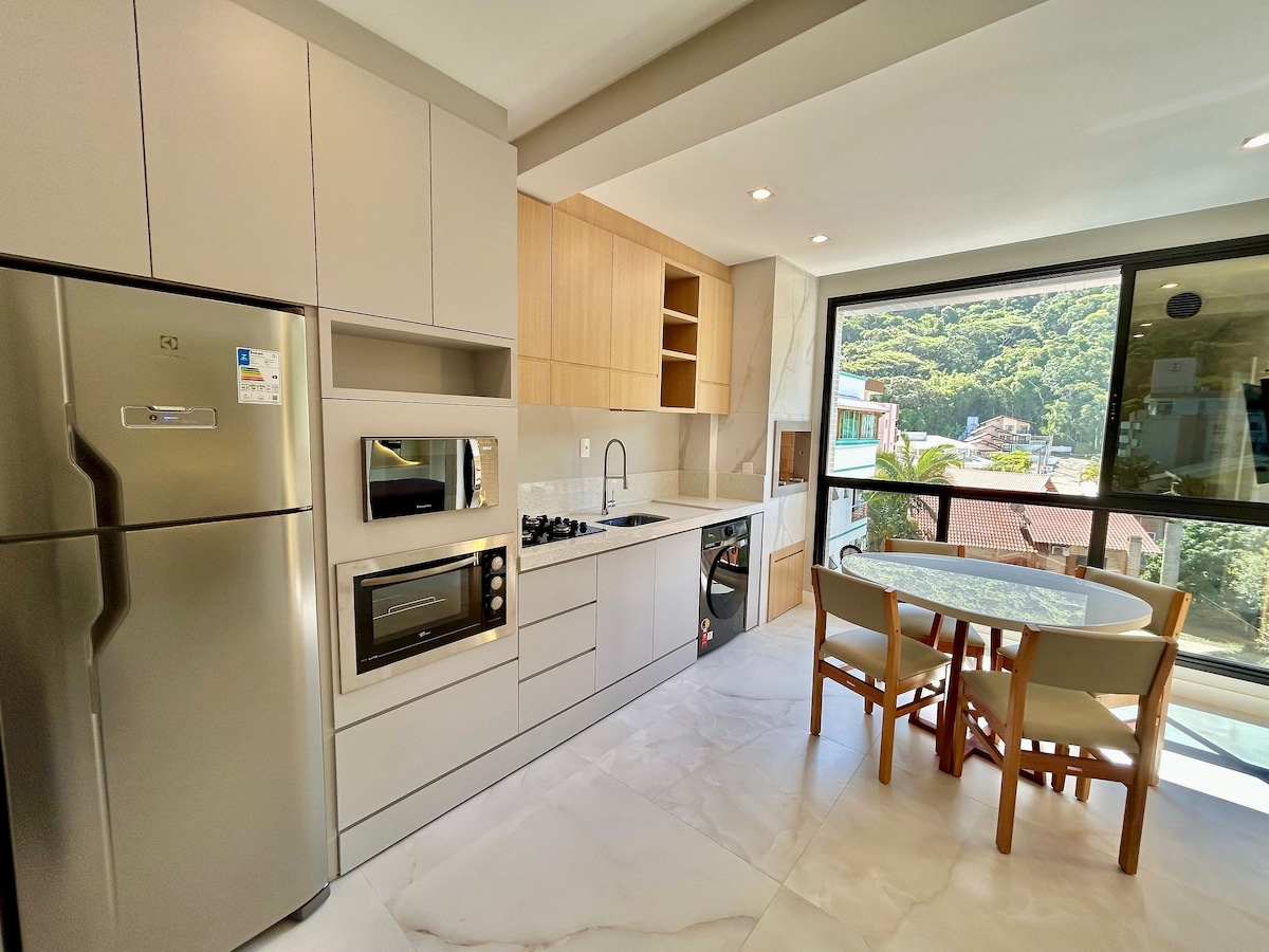 Mirante do Oceano Hospedaría Ubicación: A 70 metros de la Playa de Bombas Conforto: Todo de alto estándar y calidad Aire acondicionado en la sala y en el dormitorio TV en la sala y en el dormitorio Cama queen cómoda Sofá-cama excelente Cocina Completa: Estufa, microondas, horno y utensilios esenciales Comodidad: Lavadora y secadora de ropa Wi-Fi en todos los ambientes Ocio Privado: Parrilla exclusiva en el apartamento