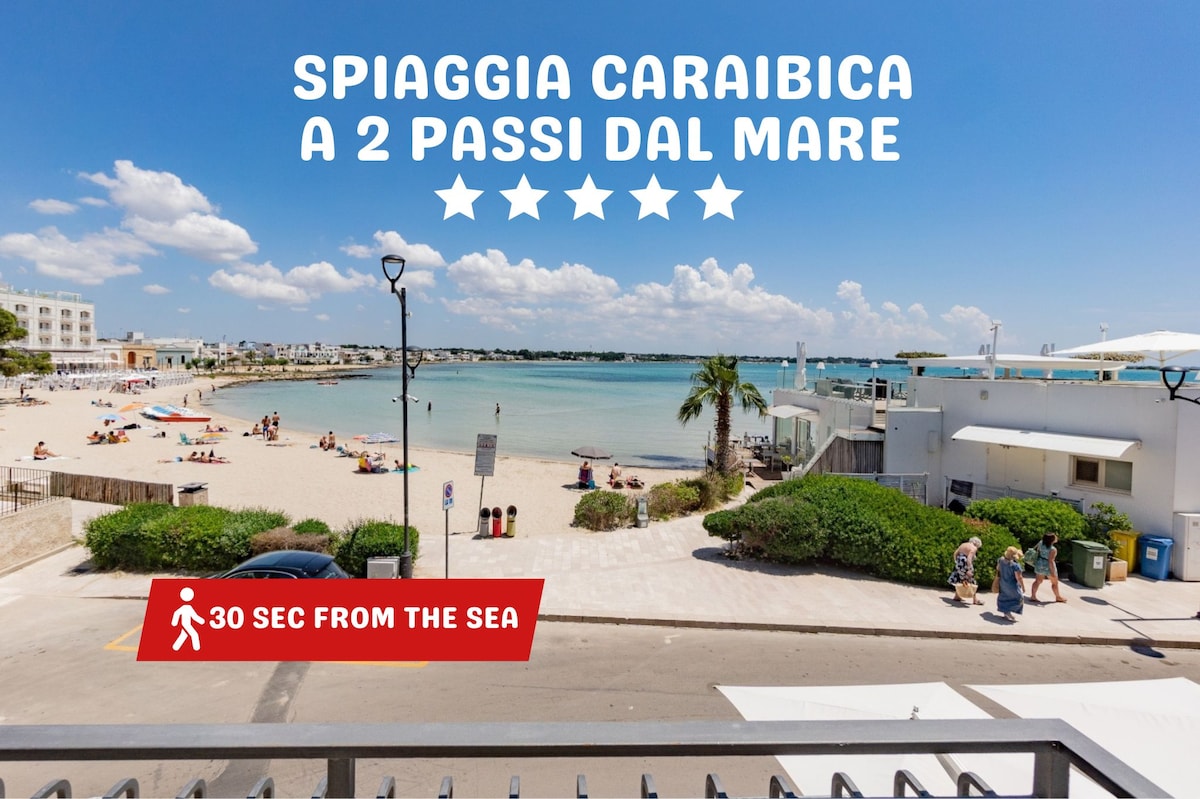 A pochi passi (20 metri) da una delle spiagge dalla sabbia bianca più belle del Salento, nota come "Approdo", dove oltre ad un'ampia zona libera si trovano diversi lidi attrezzati per diversi gusti, dai più rilassanti sino ai più ricchi di attività (Ohana, Sofia, Elios, Tabù, Belvedere, Okipa, Bassa Marea, Circolo Nautico Approdo). La sera la zona offre un panorama mozzafiato e un ambiente unico sul mare per un'esperienza impagabile. CIN: IT075097B400099621