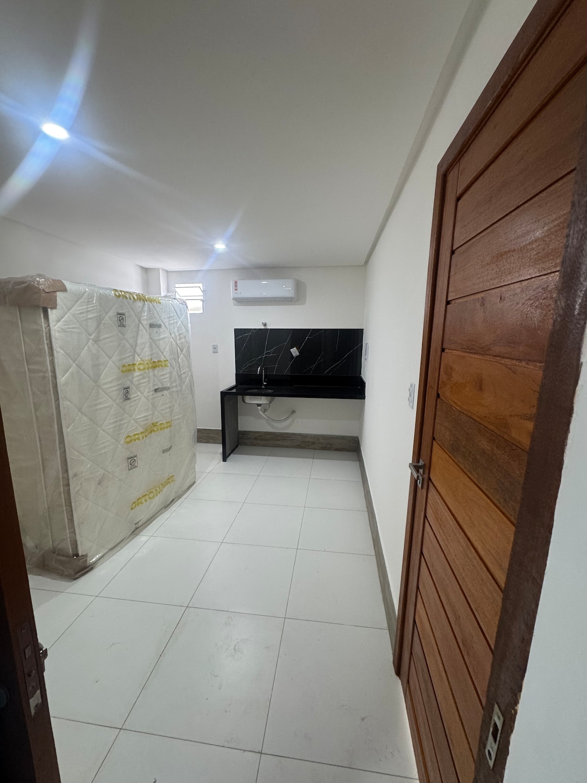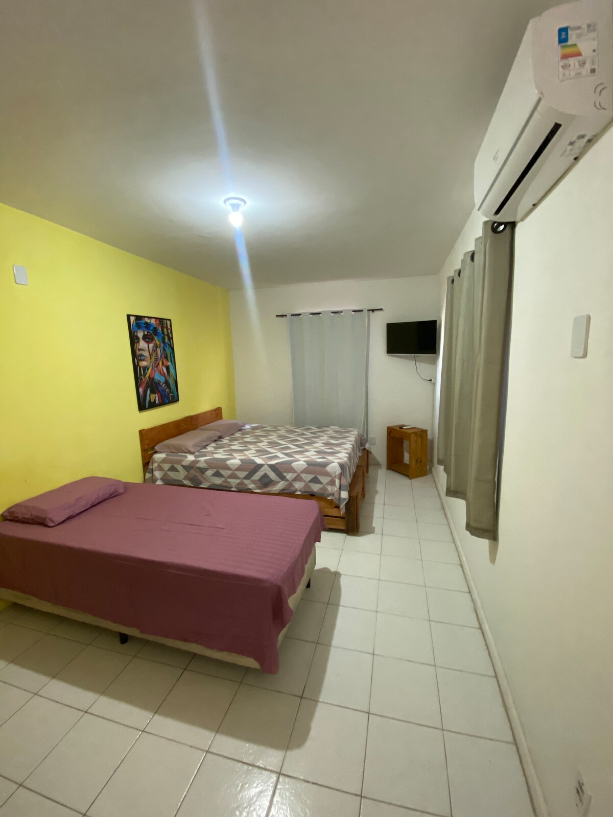 É um estúdio com 1 quarto e um banheiro somente, são 14m2 no total, mas bem localizados dentro de um condomínio a 400 metros da principal praia do bairro.