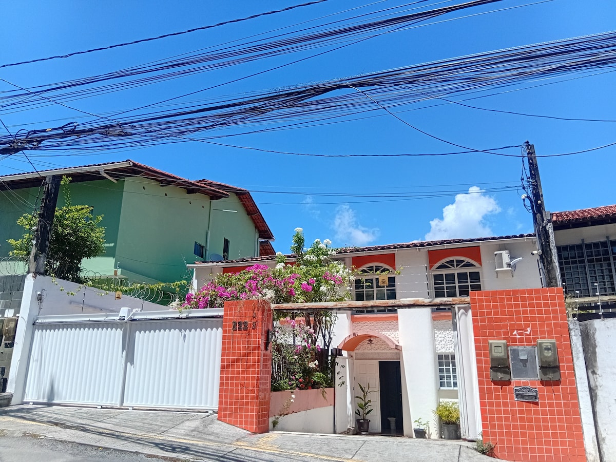 Localizada na rua principal do Santo Antônio Além do Carmo, um bairro ao mesmo tempo boêmio e residencial no Centro Histórico, minha casa acomoda desde casais até famílias numerosas em busca de um retiro cercado de excelentes cafés, restaurantes, galerias, pracinhas e charmosas vielas de paralelepípedos. Por favor leia todo o anúncio. Feita a reserva, consulte as instruções que receberá 48 horas antes de sua chegada, em especial o Guia da Casa, para garantir uma estadia tranquila e confortável.