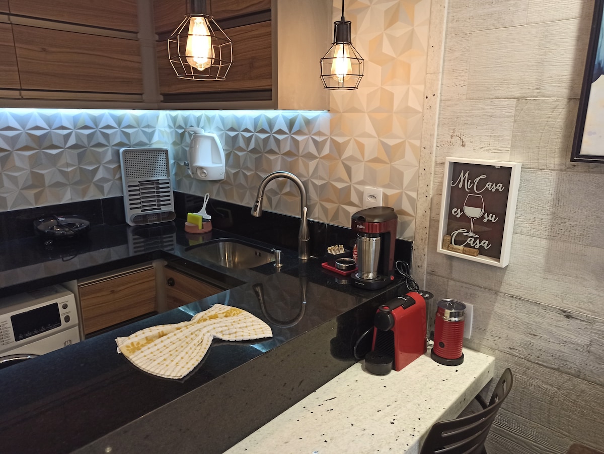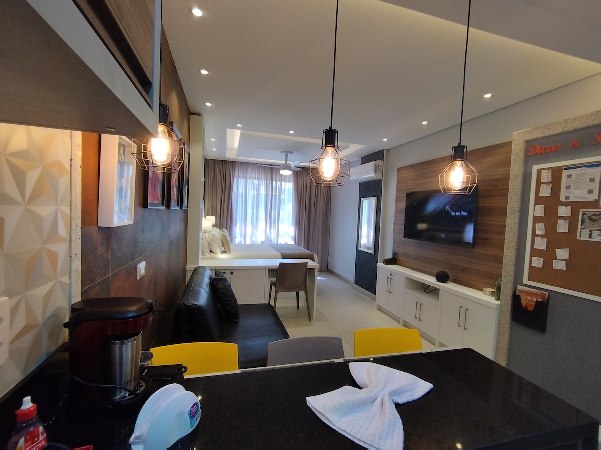 Relaxe neste espaço calmo e cheio de estilo. onde você irá apreciar da cobertura o pôr do sol mais lindo do mundo. O studio é confortável e higienizado constantemente. Dispõe de serviços de mensageiro, camareira, lavanderia, uma vaga de garagem coberta e atendimento recepção 24 horas. Você pode desfrutar de uma piscina na cobertura com vista para o mar da Baía de Todos os Santos. Próximo às praias do Porto e Farol da Barra, restaurantes, farmácias, Supermercados, Pelourinho, Museus e Igrejas.