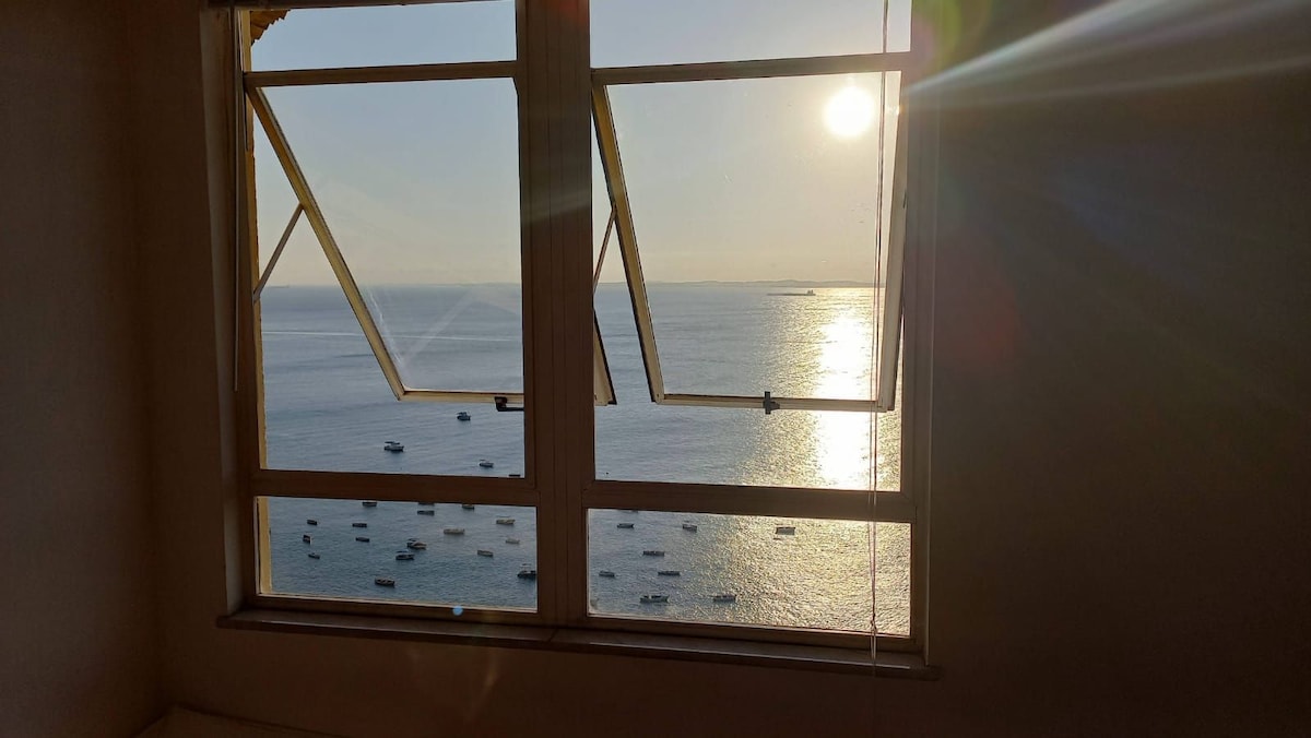 Comfortable and modern Flat on the beach, fully renovated and furnished, privileged location, close to bars, restaurants and all the bustling nightlife of Barra. The Flat has a swimming pool with the best view of Farol da Barra beach, in addition to a daily cleaning and housekeeping service, silent split air conditioning, 50” Smart TV and Wi-Fi. Situated in front of the delightful natural pools of Praia da Barra (just cross the street) and with a beautiful shore to stroll around.