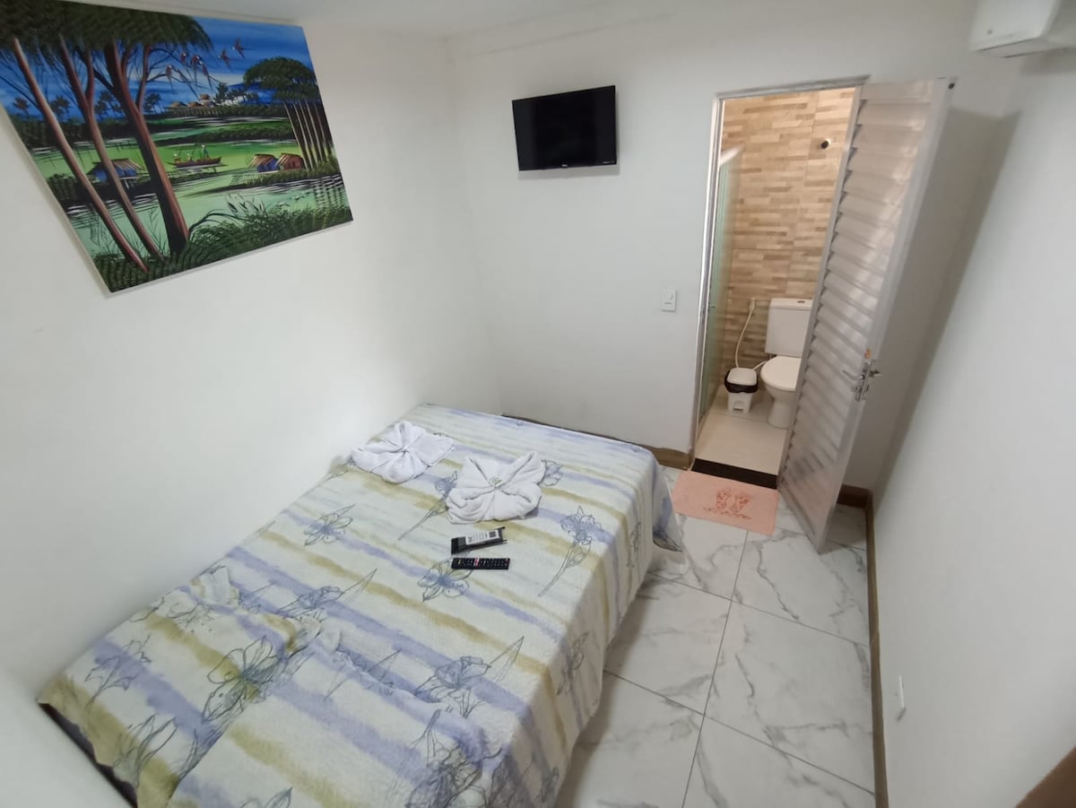 Essa acomodação oferece cama box casal, cama de solteiro, frigobar, smart TV e banheiro privativo.