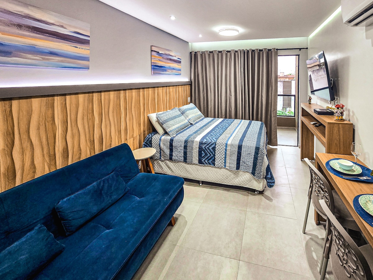 Sua família vai estar perto de tudo ao ficar neste lugar bem localizado. Fácil acesso à praia, ao centro de Porto e às piscinas naturais. Com piscina privativa na varanda. Alem de utensílios completos como: airfryer, cafeteira, sanduicheira, liquidificador, micro-ondas, cooktop e frigobar. Conta com uma cama queen, sofá-cama e ducha quente. Além do Wi-Fi, TV 55' e ar- condicionado que tornam o apto aconchegante e luxuoso.