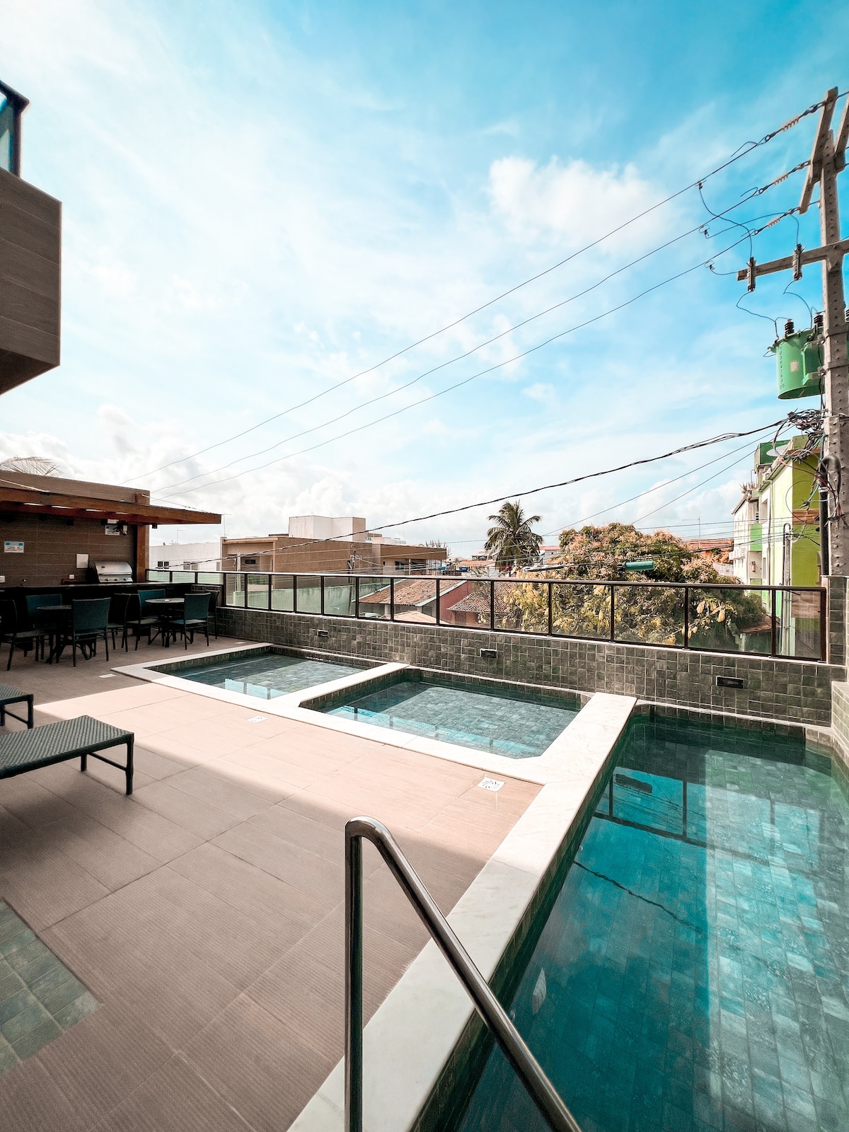 -> Enxoval completo (Cama e Banho). -> Atendimento do anfitrião 24h. ☆ Piscina Privativa com vista mar. -> Portaria 24h. -> Estacionamento interno gratuito Venha desfrutar de Porto de Galinhas da melhor forma! Flat beira-mar, com uma excelente área de lazer, juntamente com a piscina de uso exclusivo do flat. O condomínio possui áreas de lazer completas, como o rooftop, que conta com churrasqueira, piscinas e guarda-sóis, além de uma vista panorâmica para a praia.