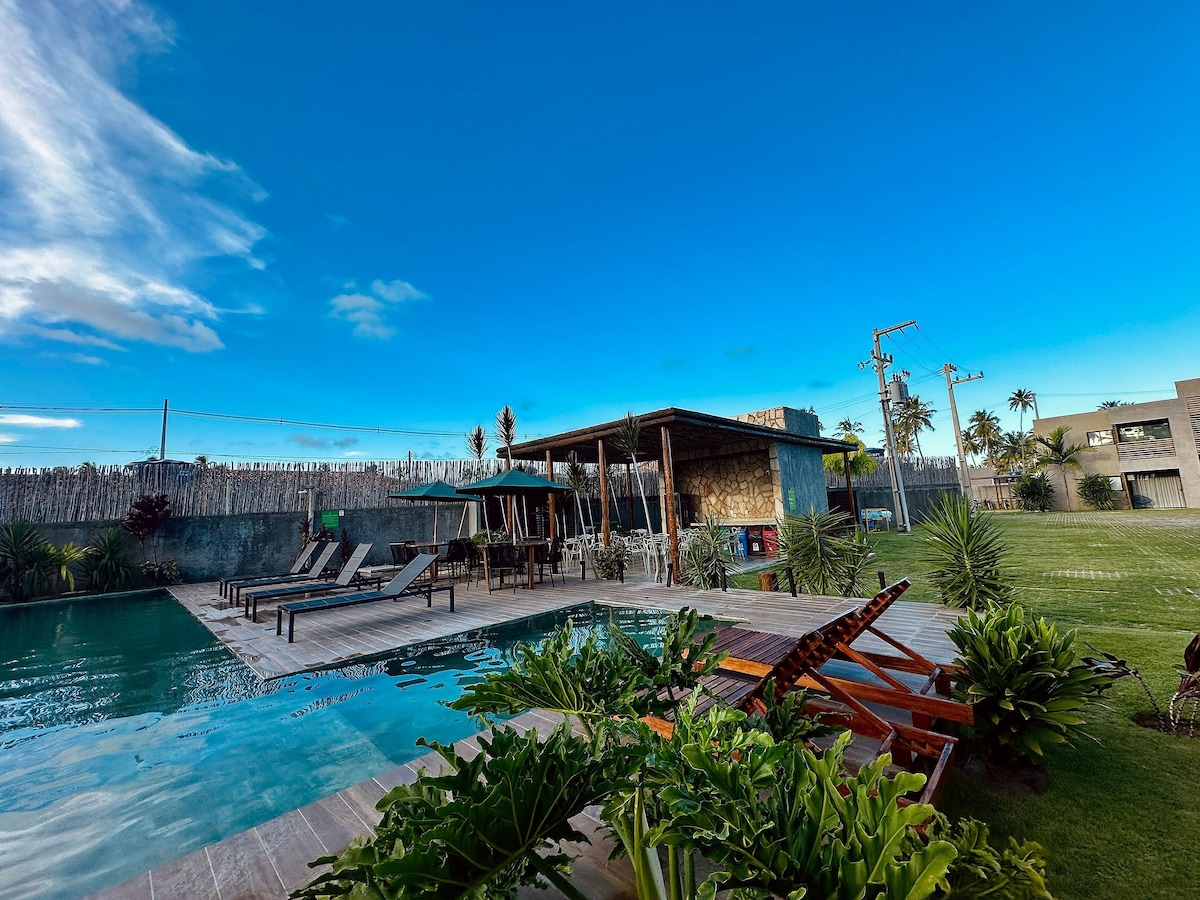 Bem-vindo ao nosso paraíso próximo ao mar! Localizado na deslumbrante Rota Ecológica dos Milagres, a 190 metros do mar de Patacho, nosso studio oferece uma vista incrível e decoração exclusiva. Imagine-se em um studio aconchegante, desfrutando de aventuras na Praia do Patacho com seu amor ou família. Desperte com um café da manhã na varanda gourmet, contemplando a beleza da piscina. Sua fuga para uma das praias mais bonitas do Brasil começa aqui! Cada detalhe é pensado para uma estadia perfeita.