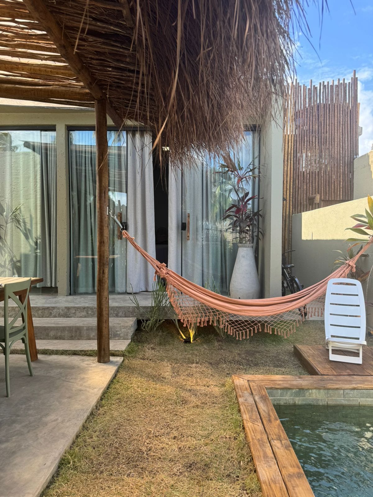 SAL&SOL são duas casinhas gêmeas a apenas 150 metros da praia do Patacho (AL). Esta aqui que você está vendo é a SAL. Construímos elas com o maior cuidado para serem nossos refúgios em momentos que precisamos relaxar e buscar inspiração. Quando não estamos por lá, alugamos tanto SAL quanto SOL. E alugamos as duas juntas também. São casinhas independentes, a SAL com piscina, a SOL com um lindo jardim. Foram inauguradas em maio de 2023 e estão sempre muito muito bem cuidadas!