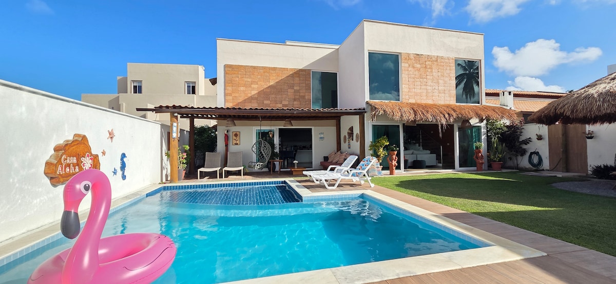 Lugar especial e aconchegante para sua família e amigos se divertirem na paradisíaca Praia de Tatuamunha, que está apenas a 130m e 150m do rio que tem o mesmo nome. São 280m² de área construída com 03 suítes( sendo 1 master), TV smart e split, colchões queen com molas ensacadas novos, cozinha completa. E 170m² de área externa, piscina, cozinha gourmet completa, cervejeira, churrasqueira e espreguiçadeiras. Oferecemos também, como cortesia, diarista para lavar as louças e limpar a casa.