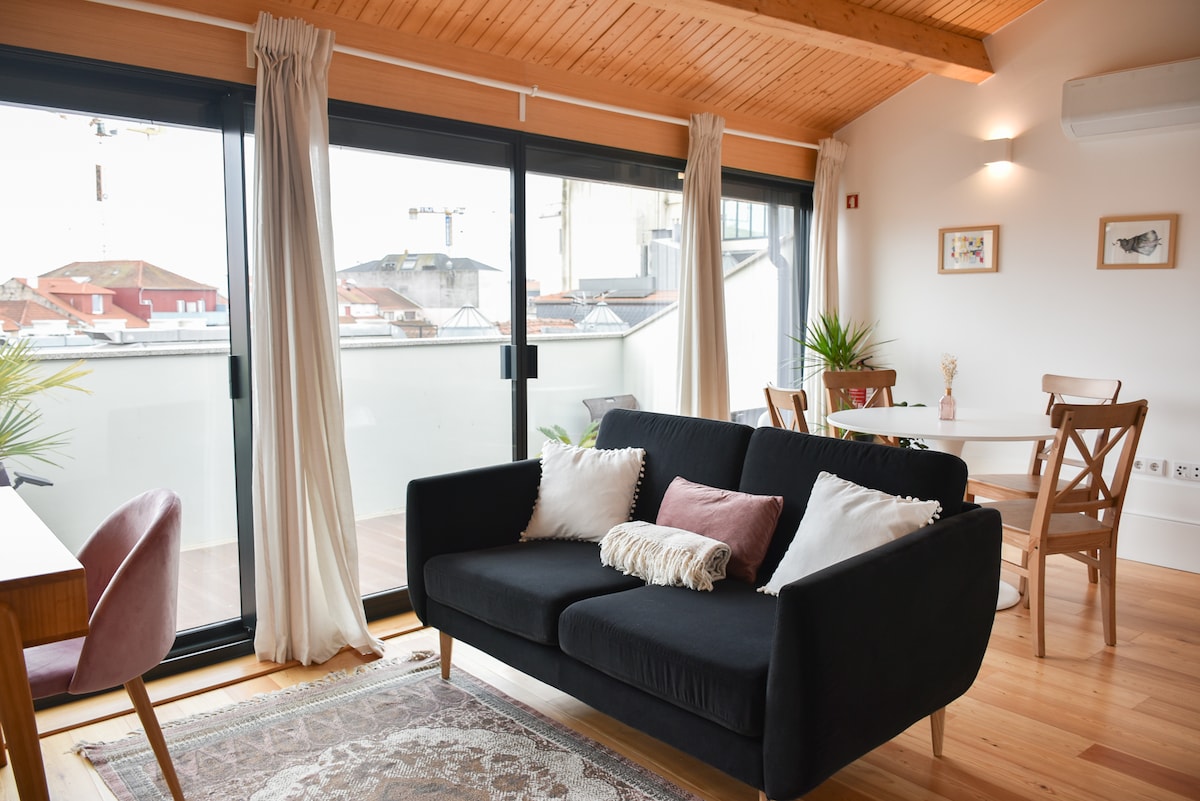 Located at the heart of Porto, the Penthouse provides a unique experience as your accommodation. On the top floor of a refurnished stylish building of the '50s, this brand new penthouse has a big picture window in the living room and a 40 square meters terrace on two sides, providing amazing views of downtown Porto and an unforgettable "outdoor" leisure experience. High-quality furniture and home facilities guarantee you a quiet and comfortable stay in downtown Porto.