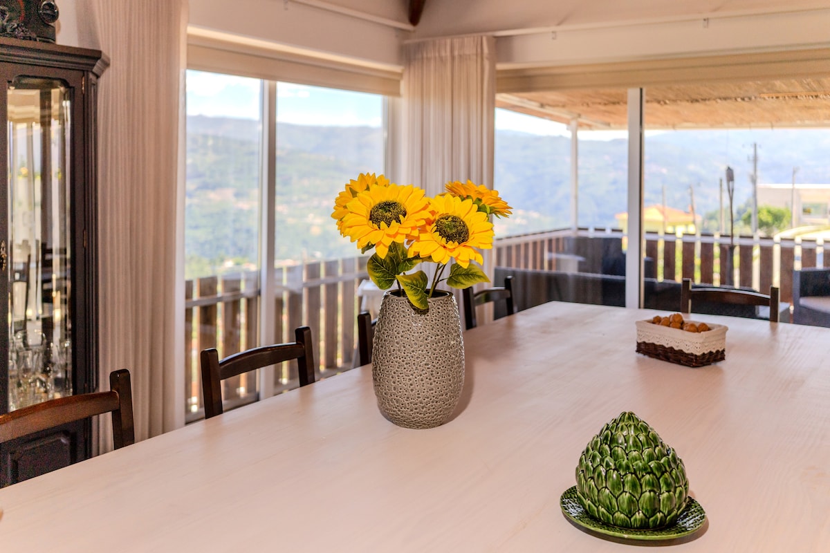 Welcome to Casa do Miradouro | Casa da Benfeitoria A romantic retreat atop an old farm estate, surrounded by gardens, green landscapes, and silence. Here, time slows down. Located in the village of Tabuadelo, at the gates of Guimarães, Casa do Miradouro combines comfort, authenticity, and breathtaking views over the Minho.