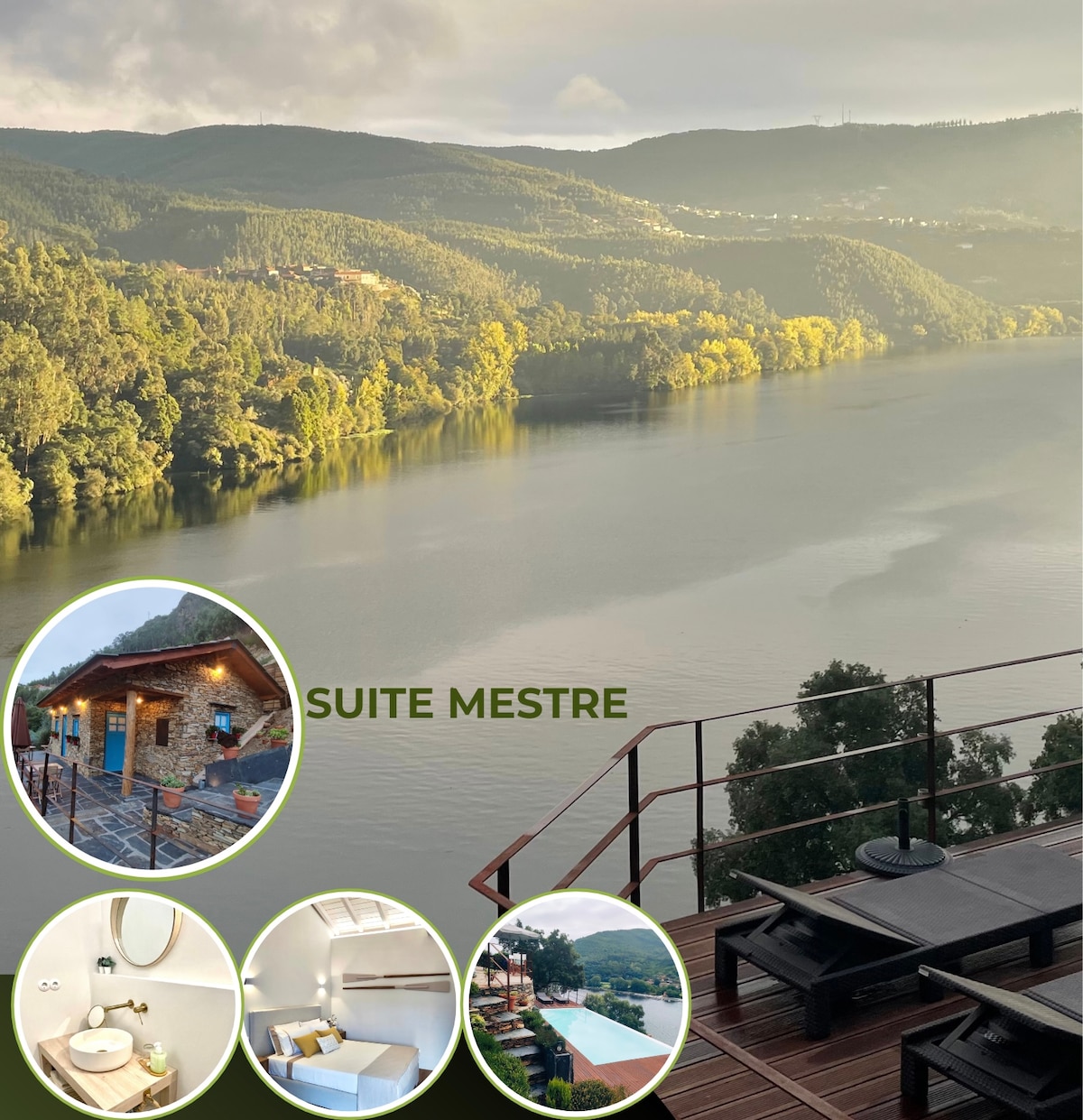 Vila Cancelos Douro suites nestles at the foot of the Serra da Boneca. This schist building houses have just two independent suites, without internal connection. Its charming decoration is invaded by the peaceful landscape of the Douro River that enters in such a way that it seems to be part of it. The saltwater infinity pool has a privileged view of the Douro River, a great place for a refreshing swim or contemplating the tranquility of the river and the schist villages of Midões , Gondarém.