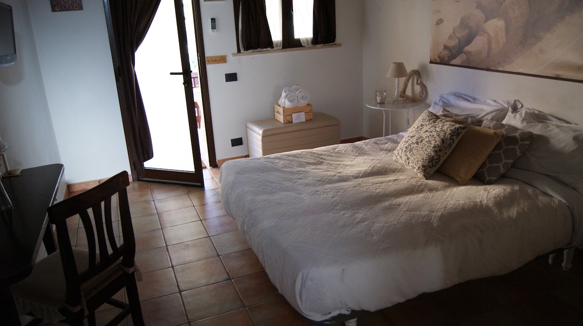 Camera arredata con gusto, letto matrimoniale confortevole ed accessoriata: balcone con vista, Wi-Fi, TV, climatizzatore, riscaldamento autonomo.