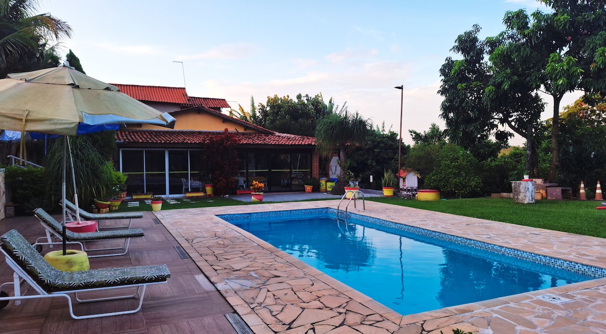 Relaxe e curta com toda a família e amigos nesta acomodação tranquila. com ótima localização, há 25 minutos da fazenda Maeda, 20 minutos do centro nacional de paraquedismo, 9 Minutos do Cacau Park. Asfalto até a porta. apenas 57 minutos de Sao Paulo , Wi-Fi fibra opitca, mercado, adega, farmacia, restaurante, ortfrut tudo ha apenas 150 metros da chácara.