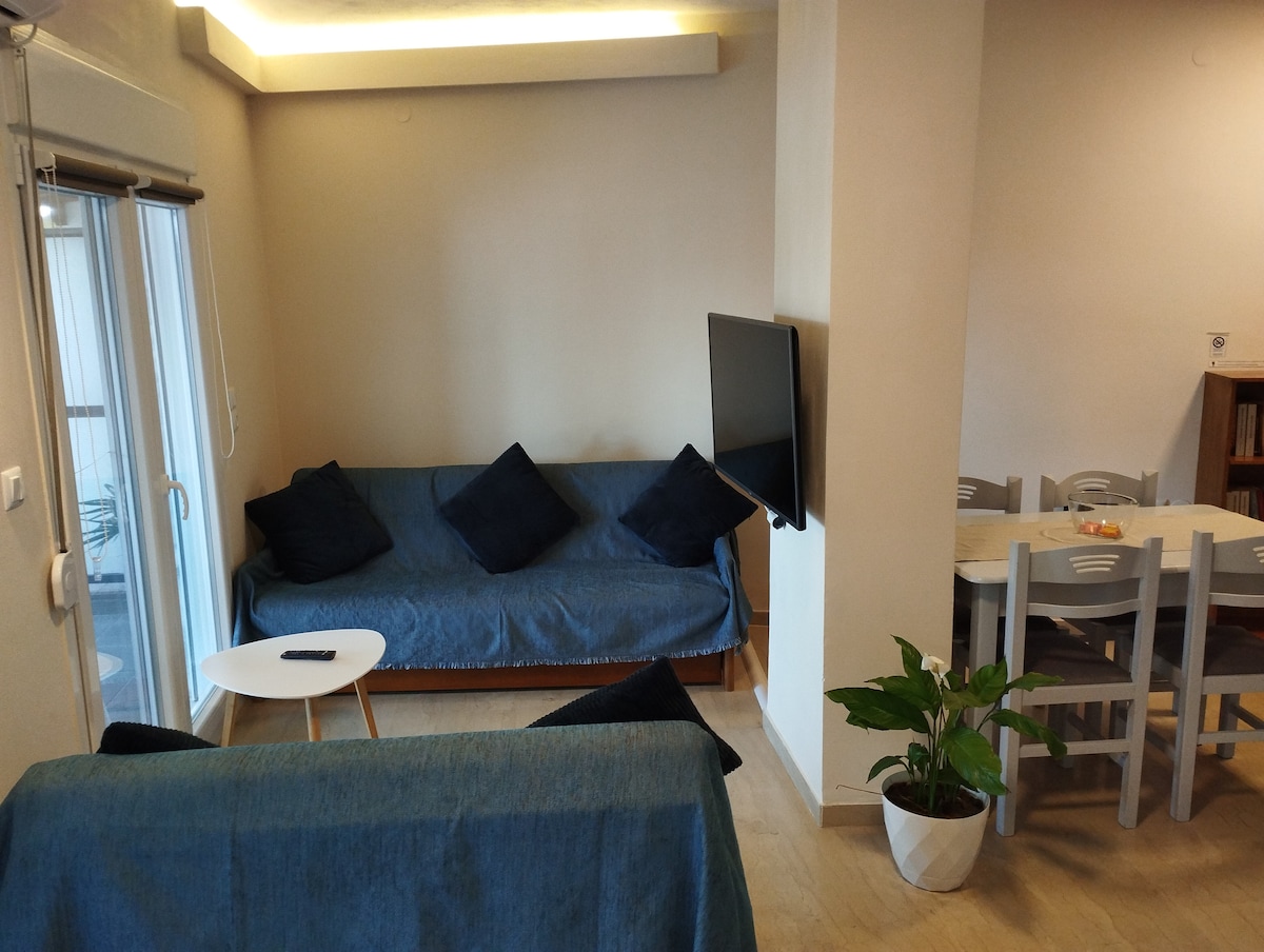 Welcome to our cozy and modern apartment in the city center of Xanthi! Our renovated all-in-one place apartment offers convenience and comfort, just a short walk from the Central Bus Station (5mins), Main Square (5mins), supermarket (1min), and pharmacy (1min). Explore the nearby Old Town (10mins) during your stay. Book now for a delightful stay!