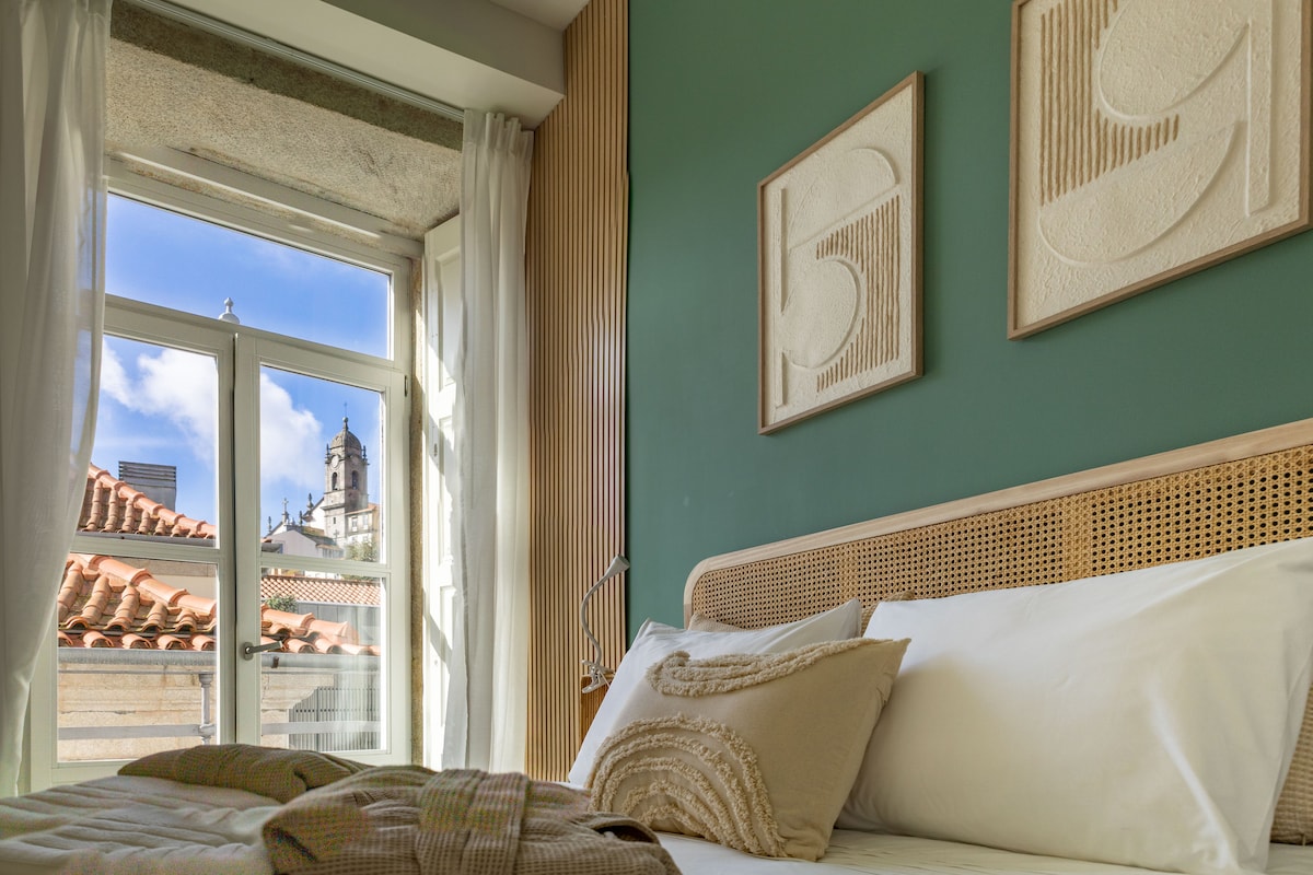 Stay in a stylish one-bedroom apartment in a historic Porto building, just steps from Clérigos Tower and Cordoaria and Virtudes Gardens. Enjoy a balcony with sweeping views over the Douro River - perfect for relaxing after a day of exploring. Like many heritage buildings, there’s no lift and a unique 0.5 bathroom design (private toilet + open sink & shower), adding to its charm. Surrounded by cafés, shops and landmarks it’s the perfect setting for friends and couples to fall in love with Porto.