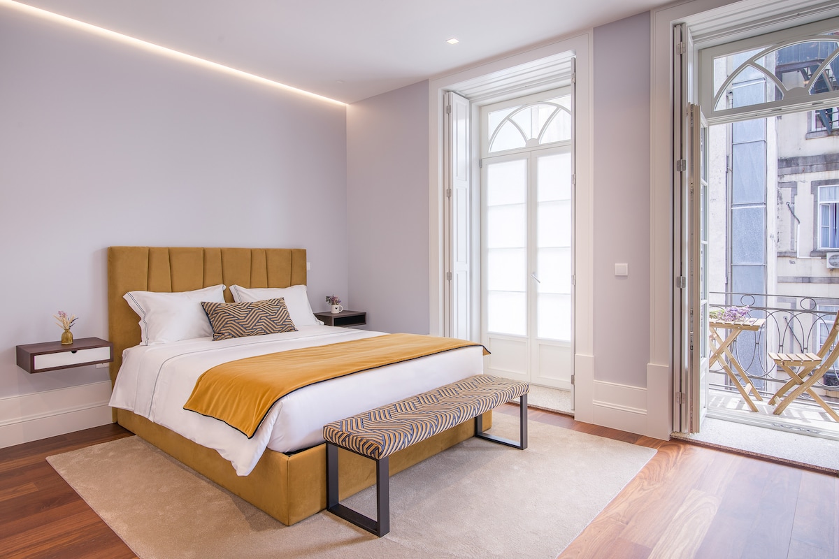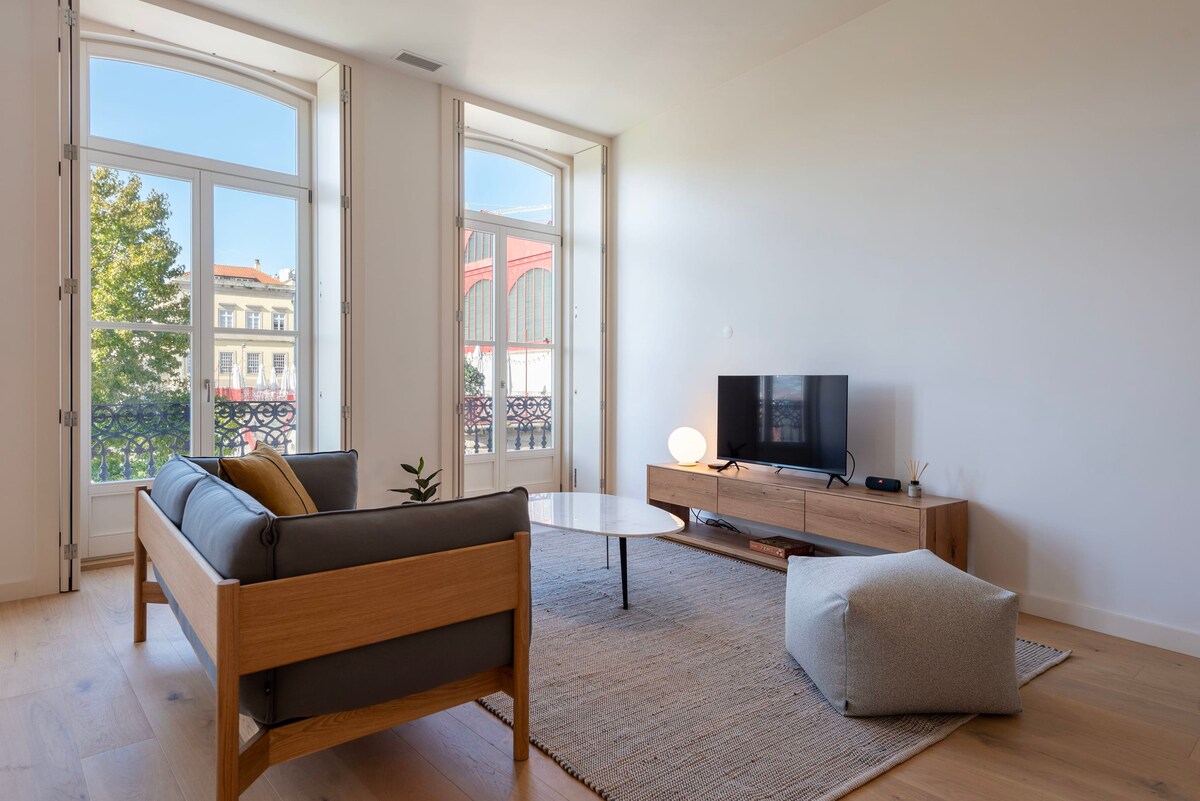 Located on the second floor, this apartment for up to four guests features air conditioning, a washer-dryer combo, a meditation room/mini gym, and a front-facing balcony. The lower-floor bedroom opens to the living room via a pocket door. Near Rua de Santa Catarina and Bolhão Market. For guests traveling with little ones, a baby pack is available on request (€25) and includes a cot with linen, high chair, bathtub, baby amenities, and a baby towel.