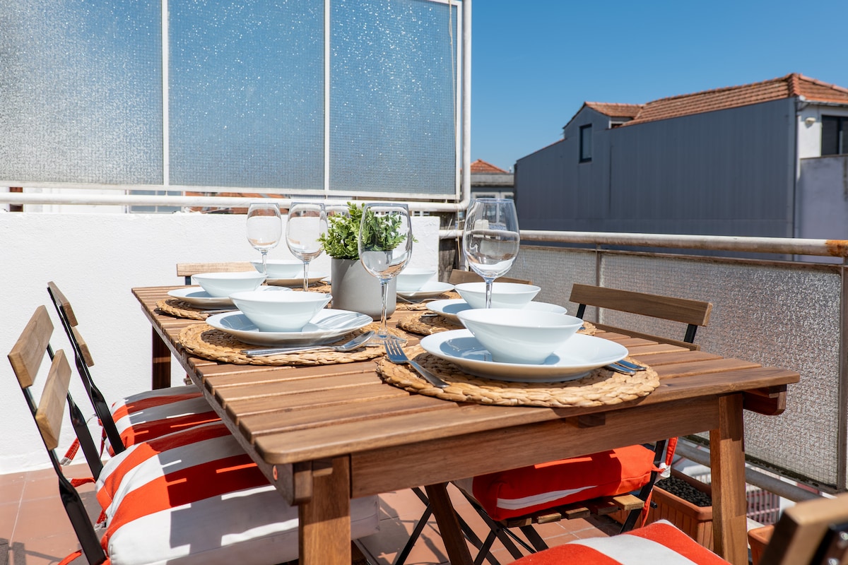 Beautiful 2 bedroom apartment in the top floor of a 70's building with a lovely terrace overlooking the river. Apartment has been fully painted in early March and there are new outdoors furniture (wooden table and chairs and relaxing chairs) . *LONG STAYS (Long term stays - over 30 days - any extra fees for the electricity over 140€ in the Winter (Nov-Mar) | 70€ in the Summer (Apr-Oct) will be payed through the resolution center) **CHECK OUR POLICY REGARDING THE COVID19 CLEANING PROCEDURES**