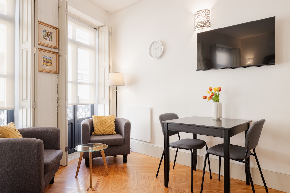 This cozy studio apartment with A/C in the historic center of Porto is situated a few steps away from all tourist attractions and only in 2 minutes walking to Lapa metro station with direct access to the airport and city center. A beautifully designed apartment in a recently renovated historic building is prepared with utmost attention to details and has everything for a comfortable stay. Privileged location in short walking distance to all famous attractions of Porto.