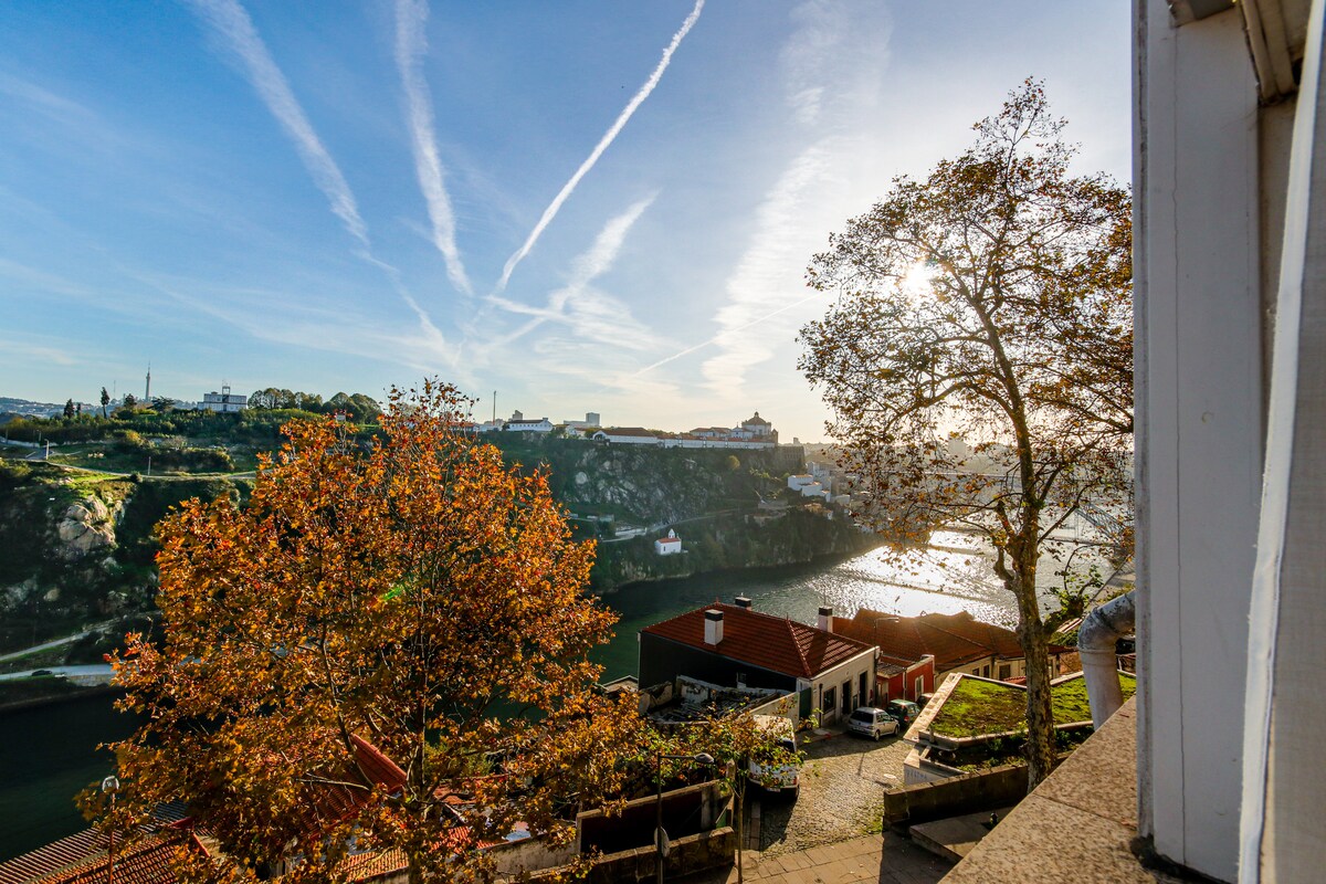 Craving a life in a penthouse with a river view? Curious to explore all of the joys that Porto and the Douro river have to offer? We're thrilled to offer this refurbished penthouse where you can enjoy two balconies, one of which has a south-facing, unobstructed Douro River view -- and top-speed WiFi and AC. You can walk outside and wander / bike / scoot along the Douro river in either direction. All of Porto is a short drive away, including the beach! The hosts are Porto born and raised.