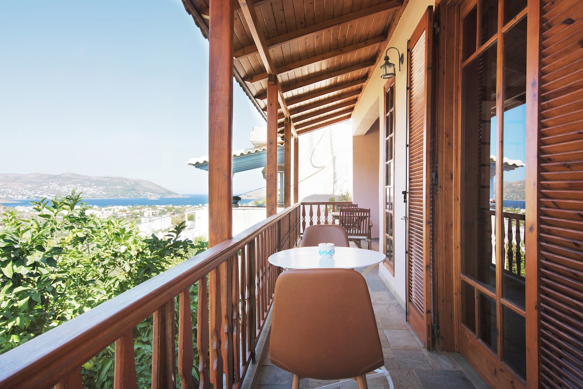 Transfer to and from the airport is available upon contacting us. Sea, light, sky, comfort, blue, harmony—words that describe the Artemis Balcony. Located in the most privileged position on the pine-covered hillside of Ai Yanni, Artemis Balcony offers our guests a breathtaking, amphitheatrically panoramic view of the Aegean Sea and the town of Artemida. Near the airport and close to Athens, it's the perfect summer retreat by the sea.