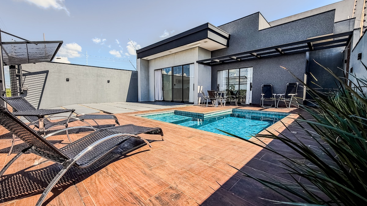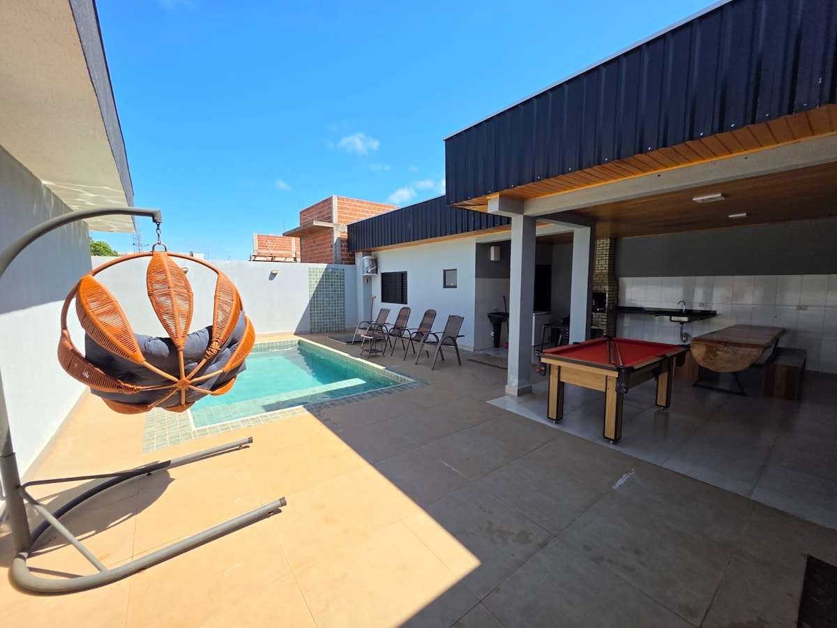 Desfrute de dias incríveis em Porto Rico-PR nesta casa moderna e aconchegante! 🌞 Conforto e lazer: piscina privativa, espaço gourmet completo com churrasqueira e área externa perfeita para reunir a família. 🛏️ Acomoda até 12 pessoas, com 3 quartos climatizados (sendo 1 suíte). 🚿 2 banheiros e 1 lavabo modernos. 🍽️ Cozinha equipada, sala ampla e lavanderia. Ideal para famílias e grupos que buscam tranquilidade, conforto e praticidade a poucos minutos do Rio Paraná.