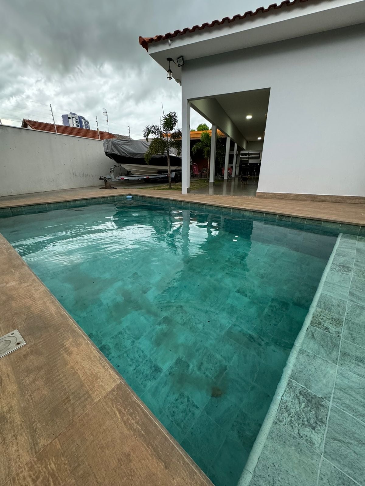 Linda casa com piscina e área gourmet com todos os acessórios, ar condicionado em todos os ambientes e ducha com aquecimento a gás. A casa possui uma bela piscina com cascata, deck de madeira e um ótimo sistema de som tanto para a área da piscina quando para a área gourmet.
