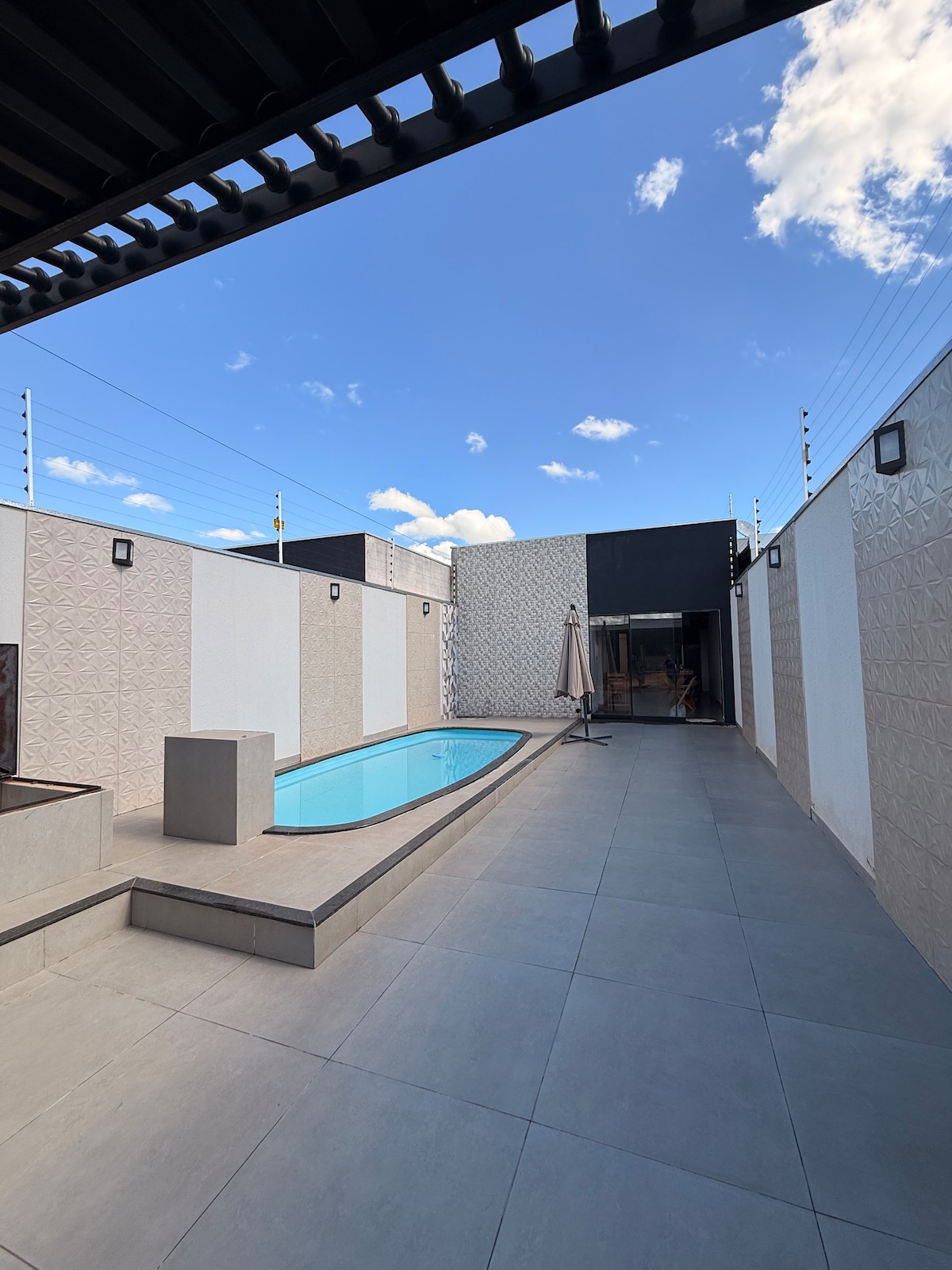 Linda casa com piscina e área gourmet com todos os acessórios, ar condicionado em todos os ambientes e ducha com aquecimento a gás. A casa possui uma bela piscina com cascata, deck de madeira e um ótimo sistema de som tanto para a área da piscina quando para a área gourmet.