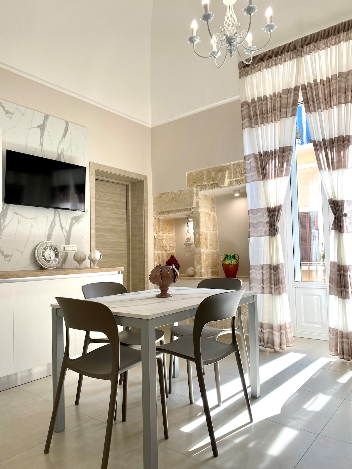CIS: BR07401291000000188 CIN: IT074012B400033730 Vivi la magica sensazione di trovarti tra passato e presente: è una dimora storica! I pavimenti d'epoca e le pareti in pietra fanno da sfondo a un ambiente arredato con oggetti di design, vecchie ceramiche e mobili locali. L'ampio terrazzo privato, con solarium e doccia calda, saprà entusiasmarti: potrai rilassarti con un bicchiere di vino al tramonto, godere del sole su comodi lettini o preparare una cena in una magica atmosfera pugliese.
