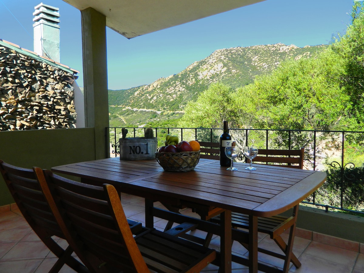 Monolocale in stile sardo,compreso di bagno,cucina,letto matrimoniale possibilità di aggiunta culla.caminetto,aria condizionata e lavatrice. All'esterno presente zona barbecue,con un eccezionale vista mare Piscina in comune con un altra villetta