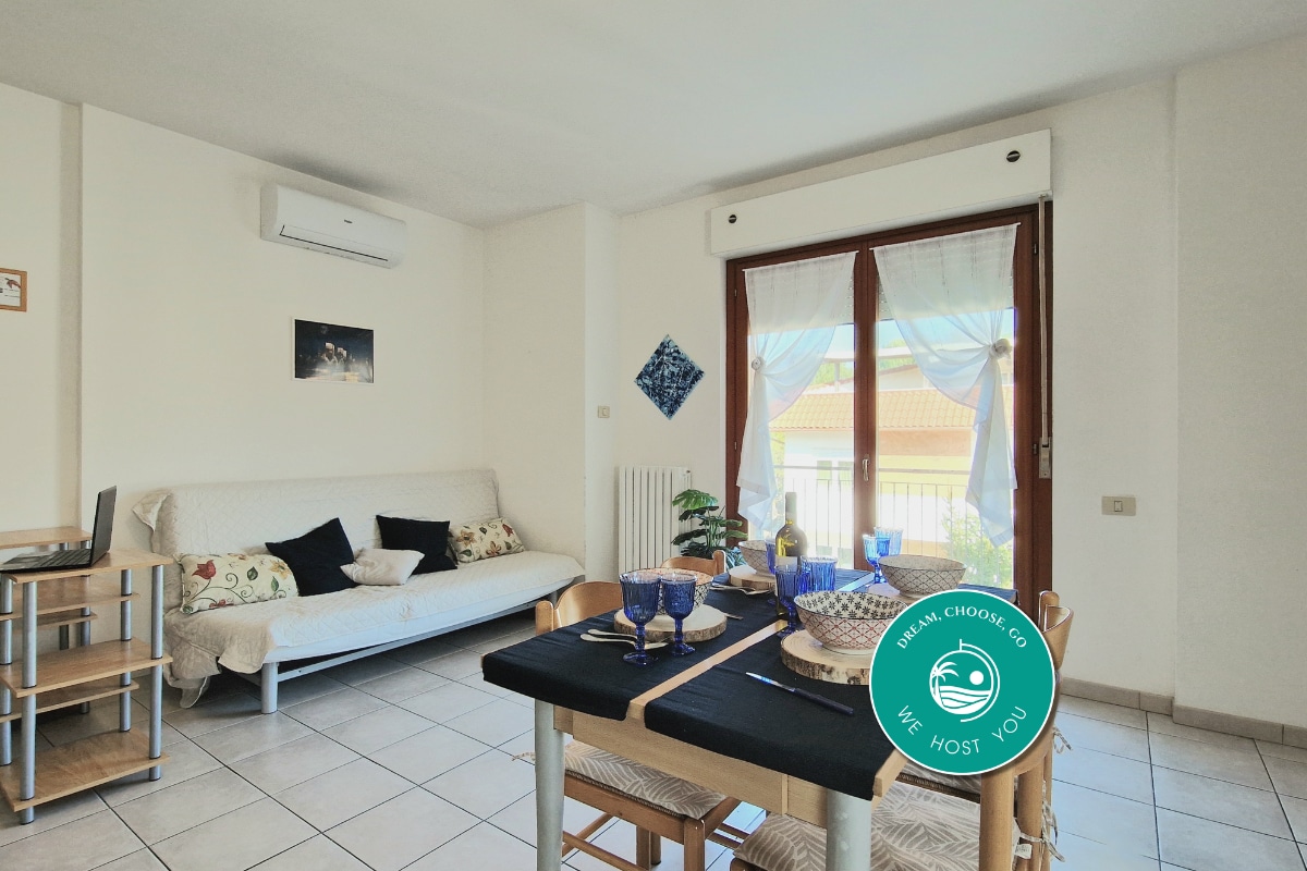 Sono Sara ho 38 anni e qualche mese fa ho deciso di lasciare il lavoro che svolgevo da più di 10 anni per intraprendere questa attività. L'appartamento si trova al secondo piano, ad un 1,5 km dal casello autostradale e 900 mt dal mare ed è composto da: 1 camera matrimoniale molto spaziosa , 1 bagno, 1 cucina dotata di lavastoviglie e salotto con ampio balcone. La zona è ben servita; a pochi passi troverete supermercati, rosticceria, bar e pizzerie.