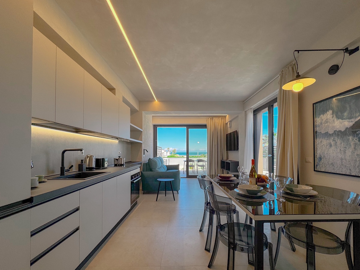 Modern apartment with patio overlooking the sea, located in the most peaceful and exclusive area of ​​the town. The position is strategic, just 3 km from the motorway exit and directly on the cycle path that connects 3 municipalities. What makes the house unique are the private beach a stone's throw away and the sea view rooms that offer beautiful sunrises. Cozy and comfortable, it is best suited to the needs of a family, a couple, or a holiday with friends. Also convenient for winter stays.