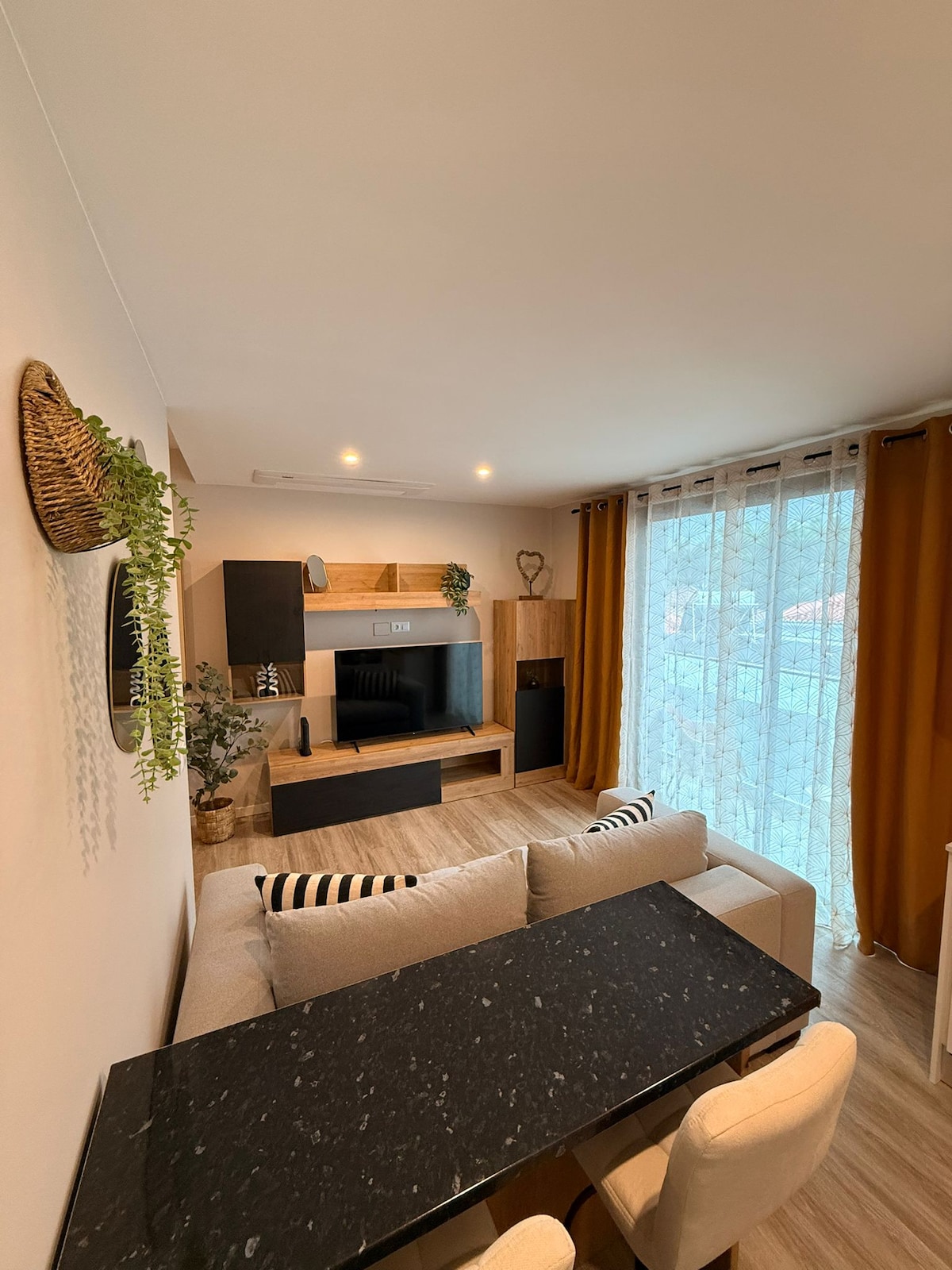 Agradável apartamento T1, com sofá-cama para mais duas pessoas. Espaçoso de decoração leve e acolhedora. Estacionamento fácil e privado. A ida à praia ou frente mar feita em 15 minutos a pé, 5 de carro. Zona sossegada e residencial, a 5 minutos a pé de padaria, mercearia, farmácia, bares e pizzaria. A 10 minutos a pé da estação rodoviária. Ao alojar-se em Machico, pode contar com a elegante baía da cidade, tradições culturais únicas, miradouros, monumentos históricos, praias ou espaços verdes.