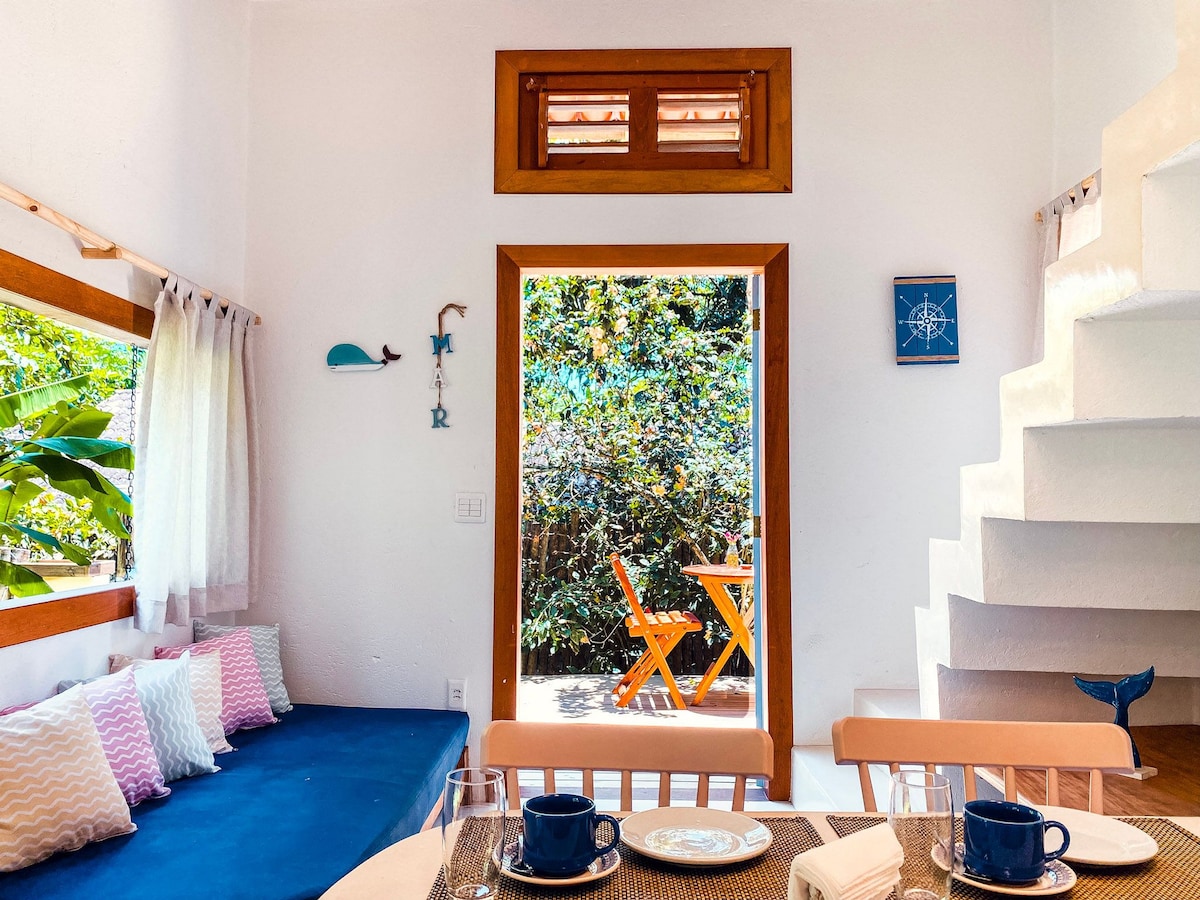 Relaxe no melhor estilo baiano :) Na casa da Buganville você viverá o melhor da Bahia: muita natureza, conforto e todo o aconchego de um espaço preparado para o descanso :) Camareira dia sim, dia não; Roupões, Lençóis 400 fios e Toalhas de alto padrão; Piscina privativa; Cozinha com fogão em Ilha; Churrasqueira; Romântico quarto de casal com ar-condicionado e varanda; Banheiro ; Sala com TV , sofá cama e ar-condicionado; Ampla varanda; Terreno privativo com 300 m²; Estacionamento; e Wi-fi;