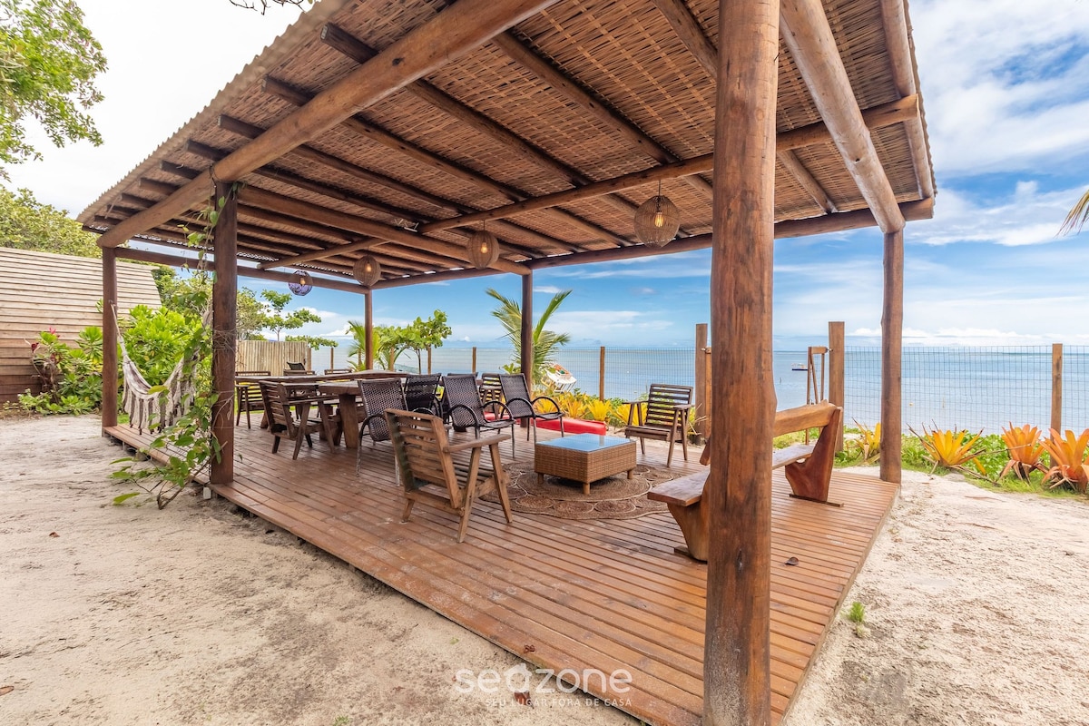 À beira mar, localizada a 10 minutos do centro e 5 minutos da balsa (de carro ou van), a casa fica em uma das melhores praias do Arraial D´ajuda (Araçaípe), dispondo de acesso livre, direto pelo quintal, para hospedes. Temos um amplo espaço de estacionamento fechado, oferecendo comodidade e segurança. Internet wi-fi, piscina e 3 opções de churrasqueiras, caiaques para passeio (consultar disponibilidade). Ótima opção para quem procura um ambiente familiar e sossegado.