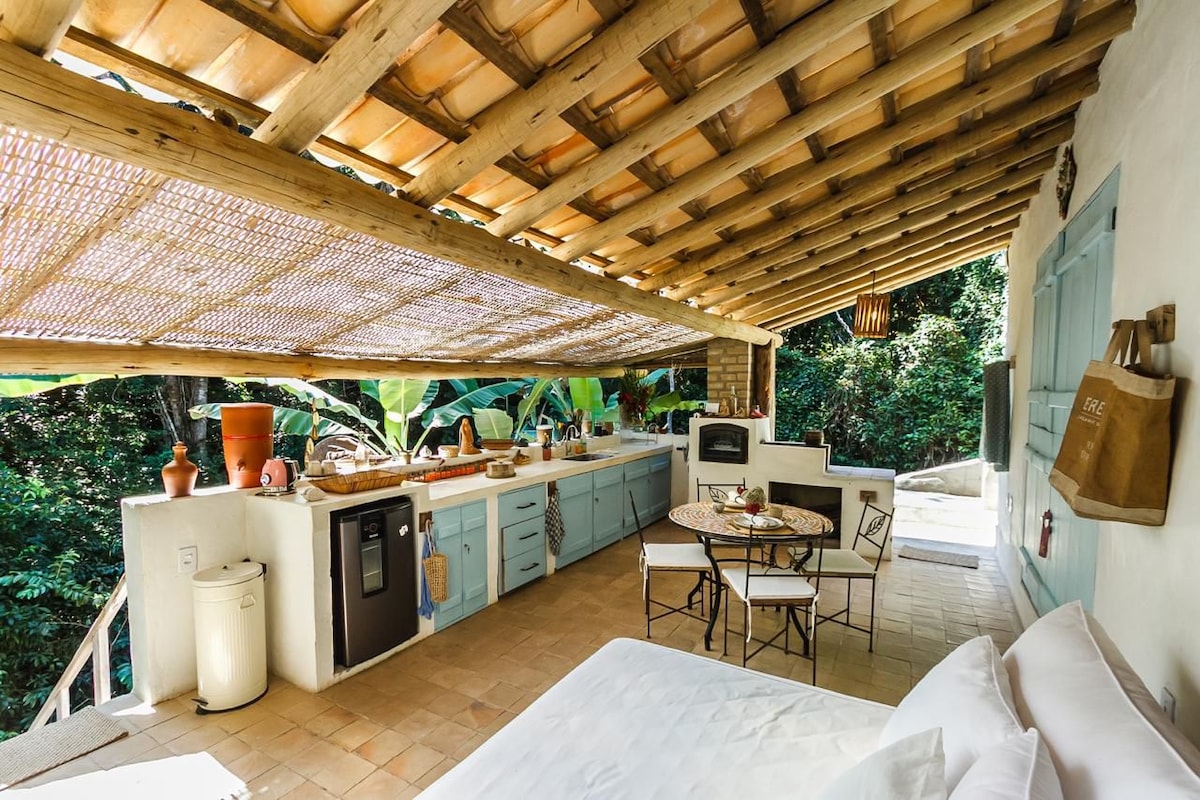 Im Zentrum von Arraial d'Ajuda, wenige Meter von der berühmten Mucugê-Straße entfernt, ist Casa Tetéia perfekt für alle, die Ruhe und Komfort suchen. Mit Meerblick und umgeben vom tropischen Garten, ein wahres Paradies und das nur wenige Minuten vom wunderschönen Strand entfernt. Zudem vollständig klimatisiert und mit Fliegengittern zum Schutz vor Insekten ausgestattet. Sie finden in der Nähe alle notwendigen Einkaufsmöglichkeiten, Supermärkte und Freizeiteinrichtungen.