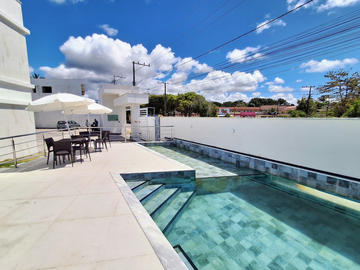 Endereço: Rua da Falésia 100, Alto da Pitinga - Arraial D'Ajuda Estamos a 2 km do centro e 1 km das principais praias. Recomendo ir de carro ou alugar. Localizado no Monte das Oliveiras, condomínio fechado, seguro com portaria 24 horas, lindo paisagismo, academia climatizada, sauna, churrasqueiras e uma piscina fantástica (Não é aquecida). Flat de 50 m2 com varanda em frente a piscina, 1 suíte com ar, sala com ar, smarts tv, sofá cama, 2 banheiros, cozinha e 1 vaga de garagem.
