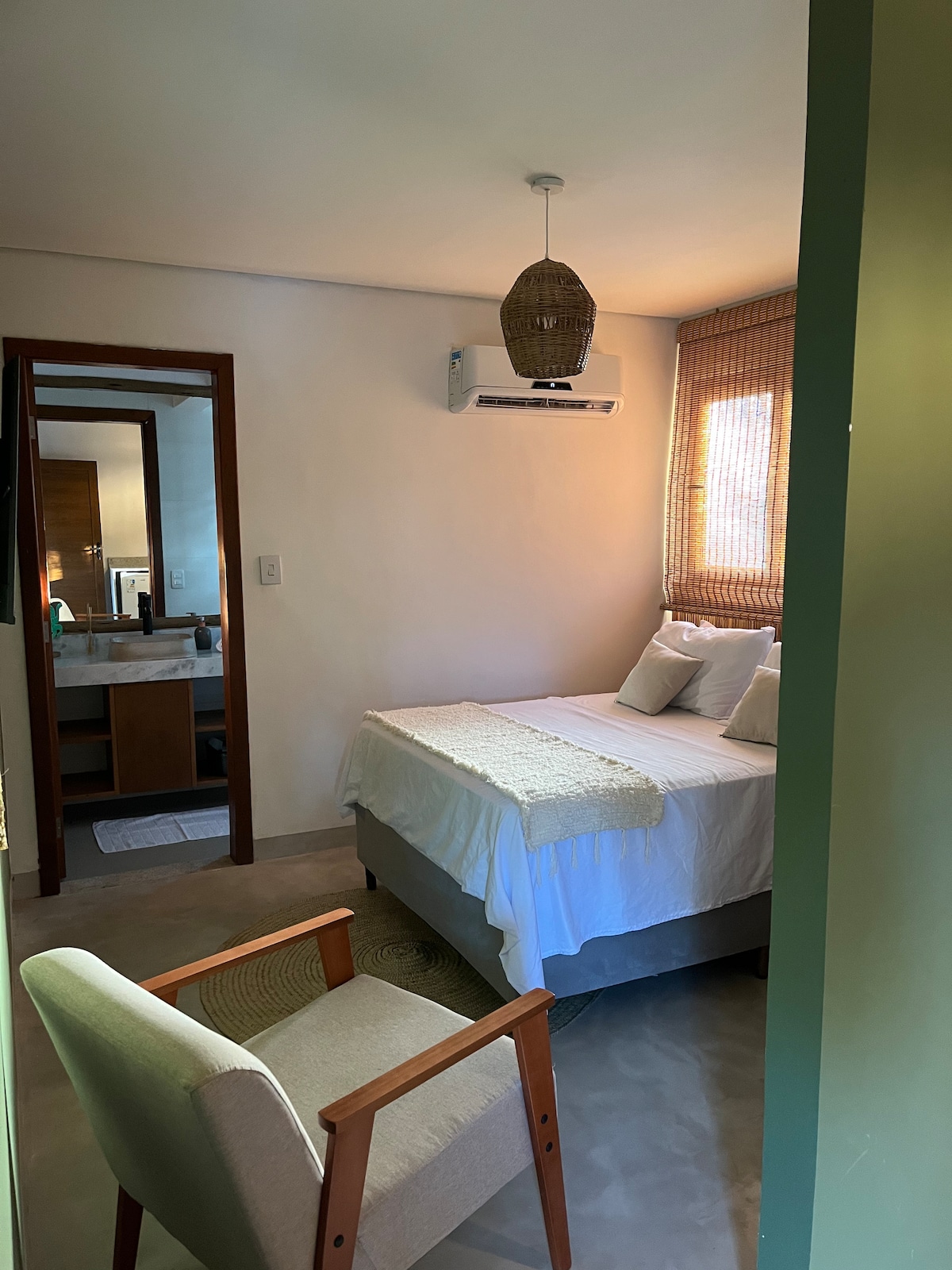 New house in the Monte das Oliveiras resort 2.5km to the center of the historical village of Arraial d'Ajuda. Perfect location for digital nomads or families that are looking for a peaceful and relaxing environment at a walking distance to the beach (10 minutes). The resort has 2 wide swimming pools, sauna, hammocks, barbecue spots and tables between the pools. The access to the beach is done via an ecological trail that passes through the top of a cliff from which you can enjoy fabulous views.