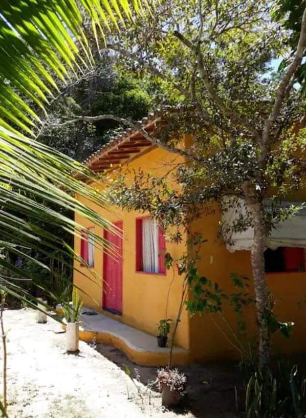 Bangalô independente, cama de casal queen size, ou 02 camas de solteiro, ar condicionado, banheiro moderno, TV Smart com Netflix disponível, WI-FI fibra ótica, pequena cozinha totalmente equipada, varanda com rede, 30 MT das lojinhas e 50 MT da Praia do Mucugê. Cottage, independent, Queen Size or Double Singue Bed, Air conditioned, Modern Bathroom Smart TV, WI-FI Fiber Optic, Small Kitchen, Hammock veranda, 30 meters from the center of Arraial and 50 meters from Mucugê Beach