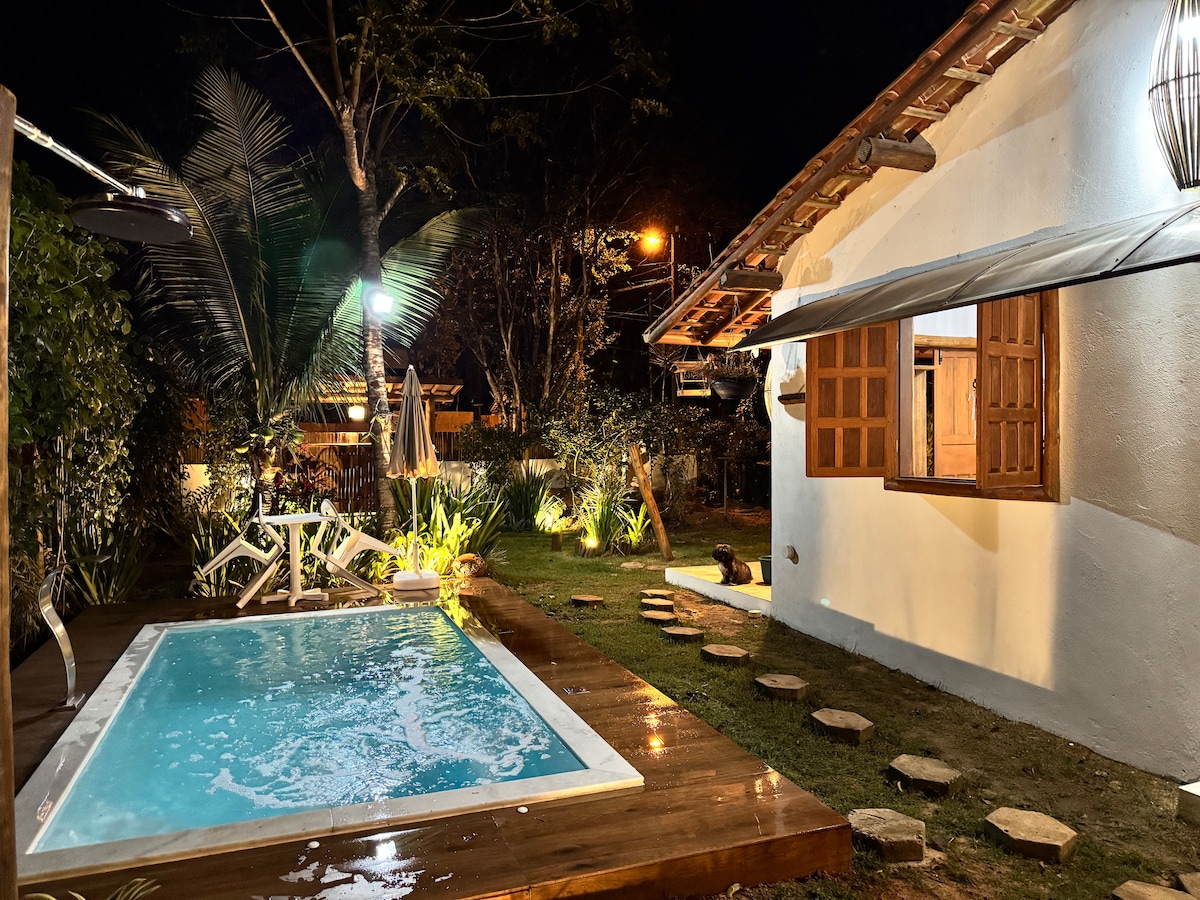 Located in the heart of Trancoso, in a safe, quiet and beautiful neighbourhood, surrounded by stunning nature, at 3 mn walking distance from the Quadrado, 10 from the beach, this freshly built chalé entirely made of recycled cedar wood is the haven you have been dreaming of .... full equipped kitchen, burning hot water, full pressure shower, air conditioner, king size bed with fine Egyptian cotton bedsheets, design furniture, comfortable outdoor terrace .... can even fit 2 kids in the room ..
