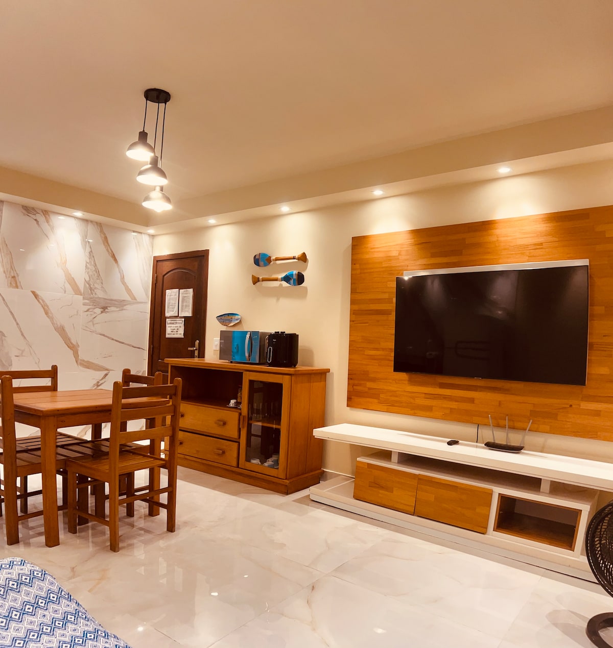 Apartamento de dois quartos, sendo 1 suíte, situado em condomínio EM FRENTE À PRAIA, com vista para o mar. - Ar condicionado nos quartos. - Smart TV na sala e no quarto de solteiro. - Cozinha completa. - Condomínio tranquilo, com ambiente familiar. - Restaurantes diversos; lavanderia; padaria; e farmácia, localizados a menos de 400m do condomínio. - Roupas de cama e banho disponibilizados. - Estacionamento gratuito para UM veículo É proibido fumar no INTERIOR do apartamento.
