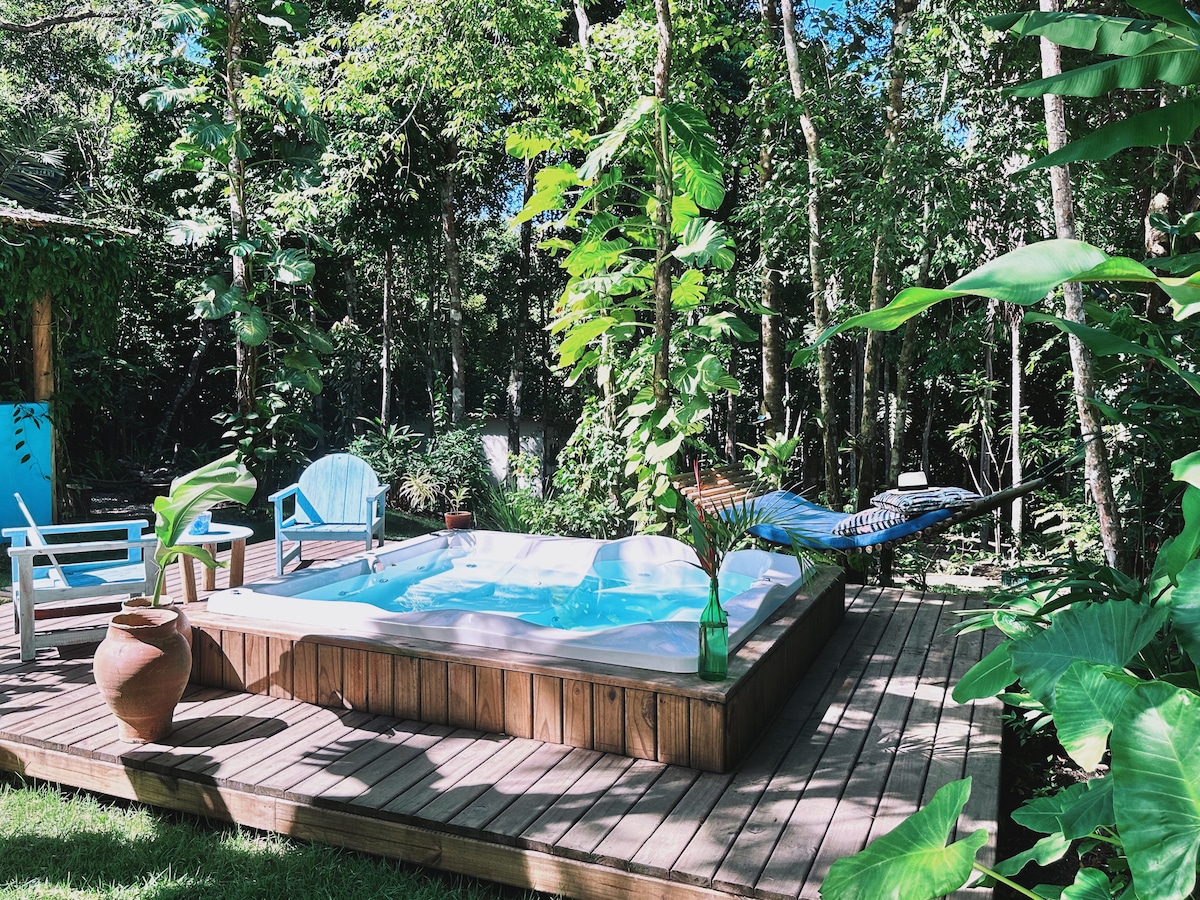 casa da mata fica a 23 km do centro de Trancoso 3 minutos de caminhada a pé da praia. Memorial da casa - 1 suíte climatizada -1 banheiro interno com ducha solar -1 cozinha gourmet equipada - 1 varanda com sofá cama -1 maca de massagem -estacionamento privativo -lavanderia equipada - Roupas de cama mesa e banho da Buddmeyer -wi-fi 200 megas -espaço para home office -fogão a lenha com forno serviços inclusos: - concierge -Cardápio sugestivo vinhos /refeições Respeite o morador local