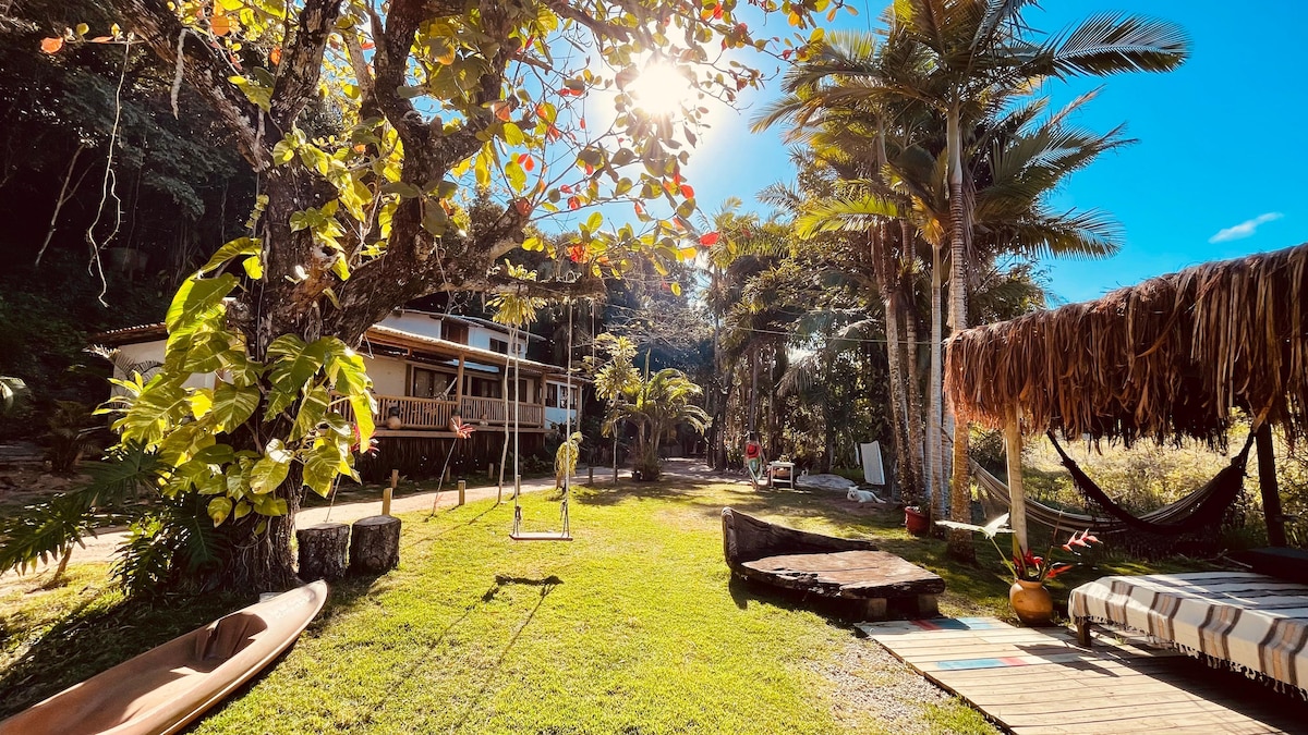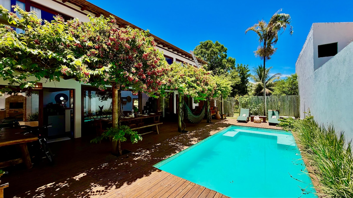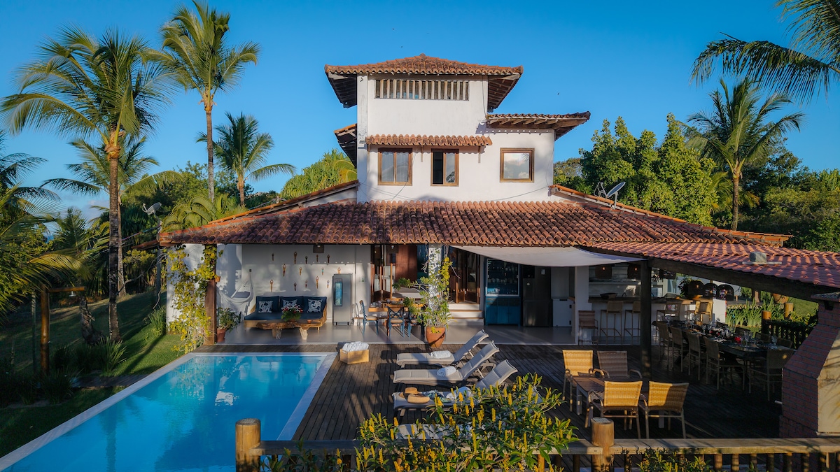 Viva a experiência de uma casa baiana, situada no melhor ponto da Vila do Outeiro, em frente da área de reserva da falésia da trilha que desce para praia com vistas espetaculares do mar. O luxo está na simplicidade, nos detalhes da arquitetura do sul da Bahia, onde os mestres fazem uso intenso da madeira nas janelas, colunas e sustentação do telhado no piso do terraço. Uma casa com o aconchego da decoração criada por sua dona, para receber sua família, amigos e agora nossos hóspedes.