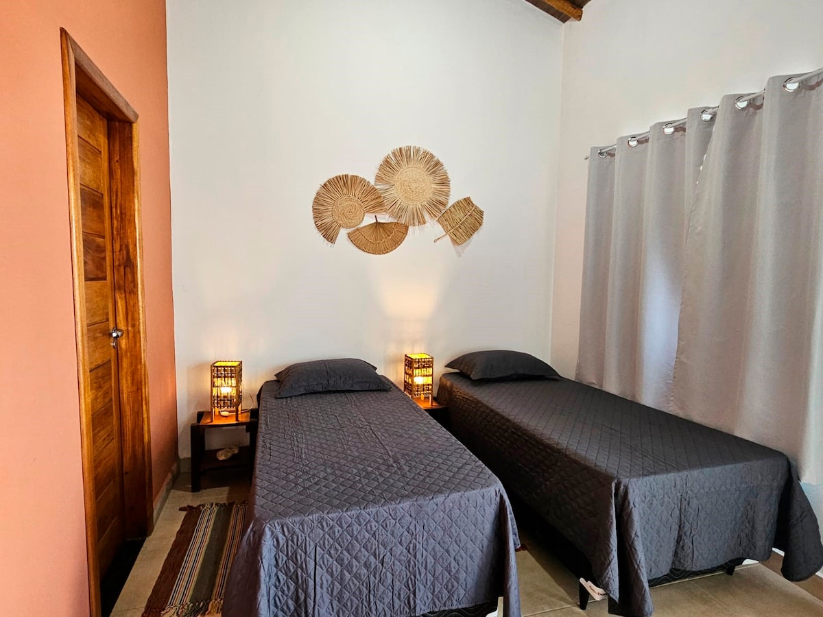 Esqueça de suas preocupações neste lugar espaçoso e tranquilo. Venha para Arraial, desfrutar das belas praias da região em uma confortável suíte com cozinha, closet, varanda em meio a natureza. É cobrado energia a parte(medidor no quarto).
