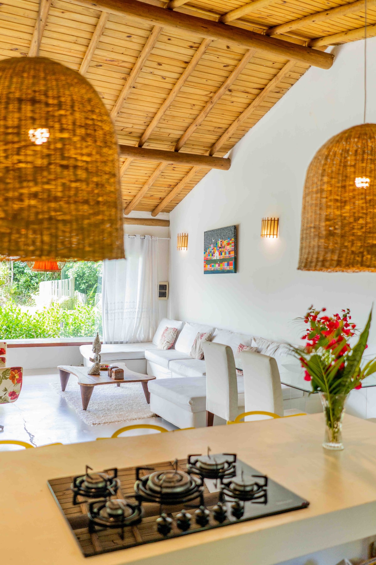 A nossa casinha foi pensada com muito carinho para trazer o máximo de conforto aos nossos hóspedes, desde uma jacuzzi incrível super privativa no deck da sua suite, enxoval inteiro de 400 fios a uma internet excelente de 200 Mb em fibra ótica para quem está de homeoffice. Nossa Vila tem 2.200 m² com lindas árvores que proporcionam um espetáculo a parte. Temos visitas diárias de 3 espécies de macacos, diversos pássaros e até bichos preguiça. :) Estamos a 2km do Quadrado e 3 km da praia + próxima