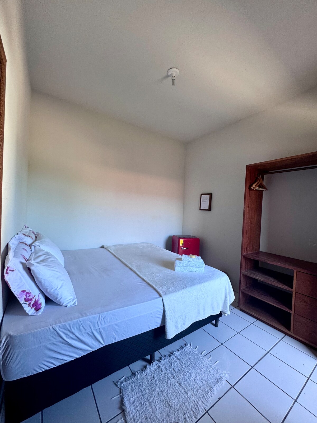 Abrace a simplicidade neste lugar. Suíte segura, aconchegante, com ar condicionado, Wi-Fi, chuveiro elétrico, cama e travesseiros bons. O quarto fica escuro e sem insetos. É localizado em TRANCOSO, no centro, numa via transversal a avenida principal, um parcial movimento durante o dia, fica no 1 andar de um prédio comercial no térreo que possui uma padaria/café artesanal, uma casa de bolos, e uma açaíteria e lanchonete. Hortifruti e distribuidora em frente; mercado, farmácia e Academia 150m.