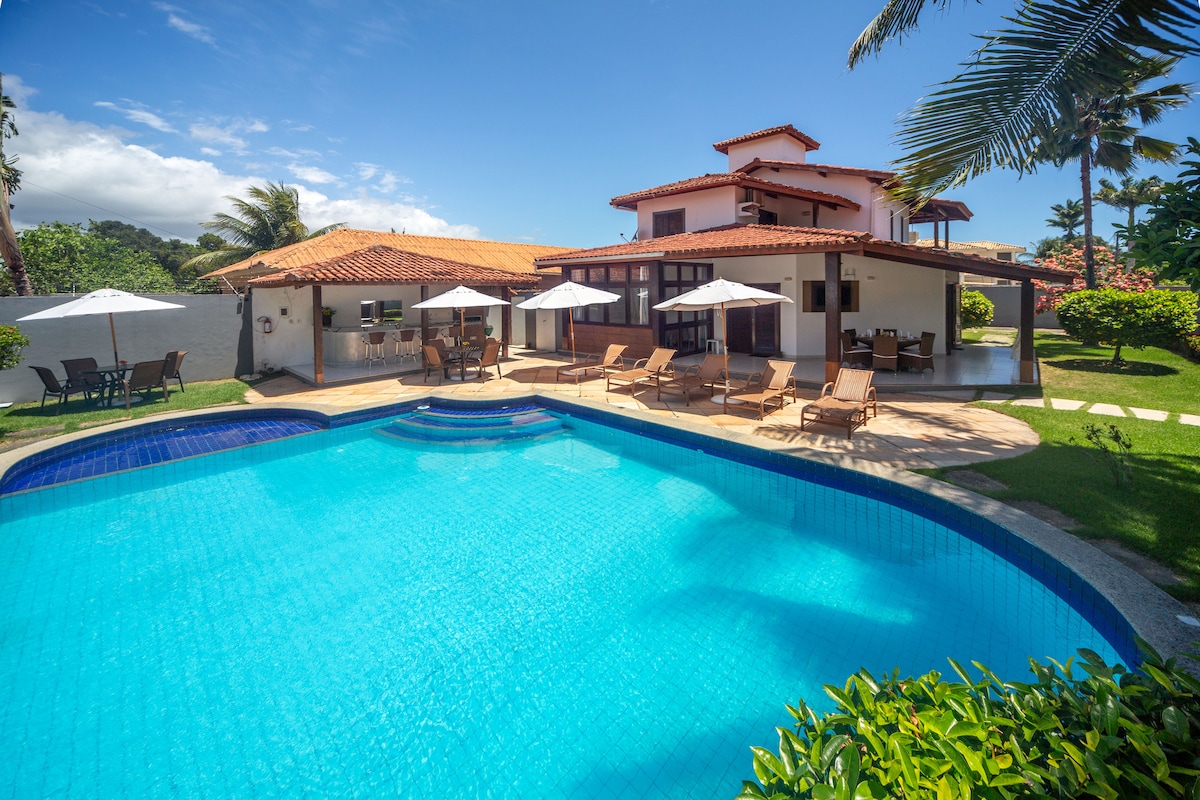 50 meters from the famous Nativos beach with its natural beauty, coconut palms and coral reefs and 70 meters where the Trancoso River flows, joining the sea, forming a lagoon ideal for playing, swimming or stand up, with a landscape. Breathtaking, this beautiful home offers comfort and style for up to 12 people in the property's 5 suites.